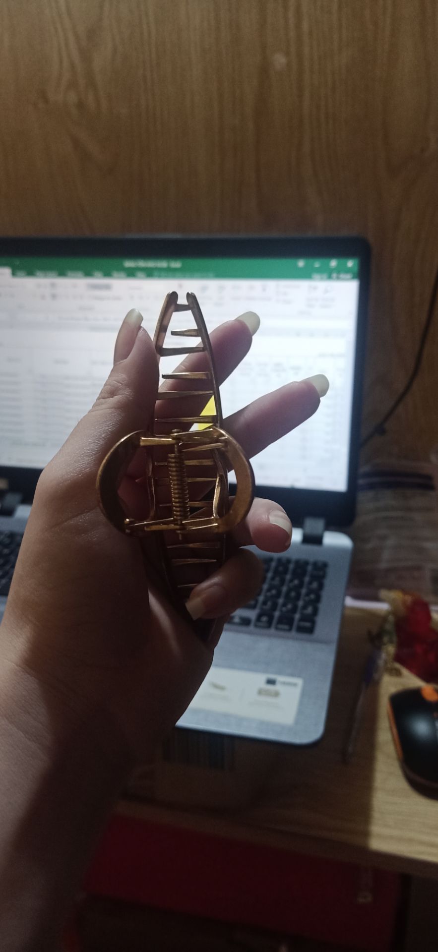 Kẹp tóc xinh, màu vàng sáng và sang. Kẹp vừa phải với tóc vừa và ít. Tóc dài và nhiều quá thì chỉ có thể kẹp được kiểu 1/2 nha