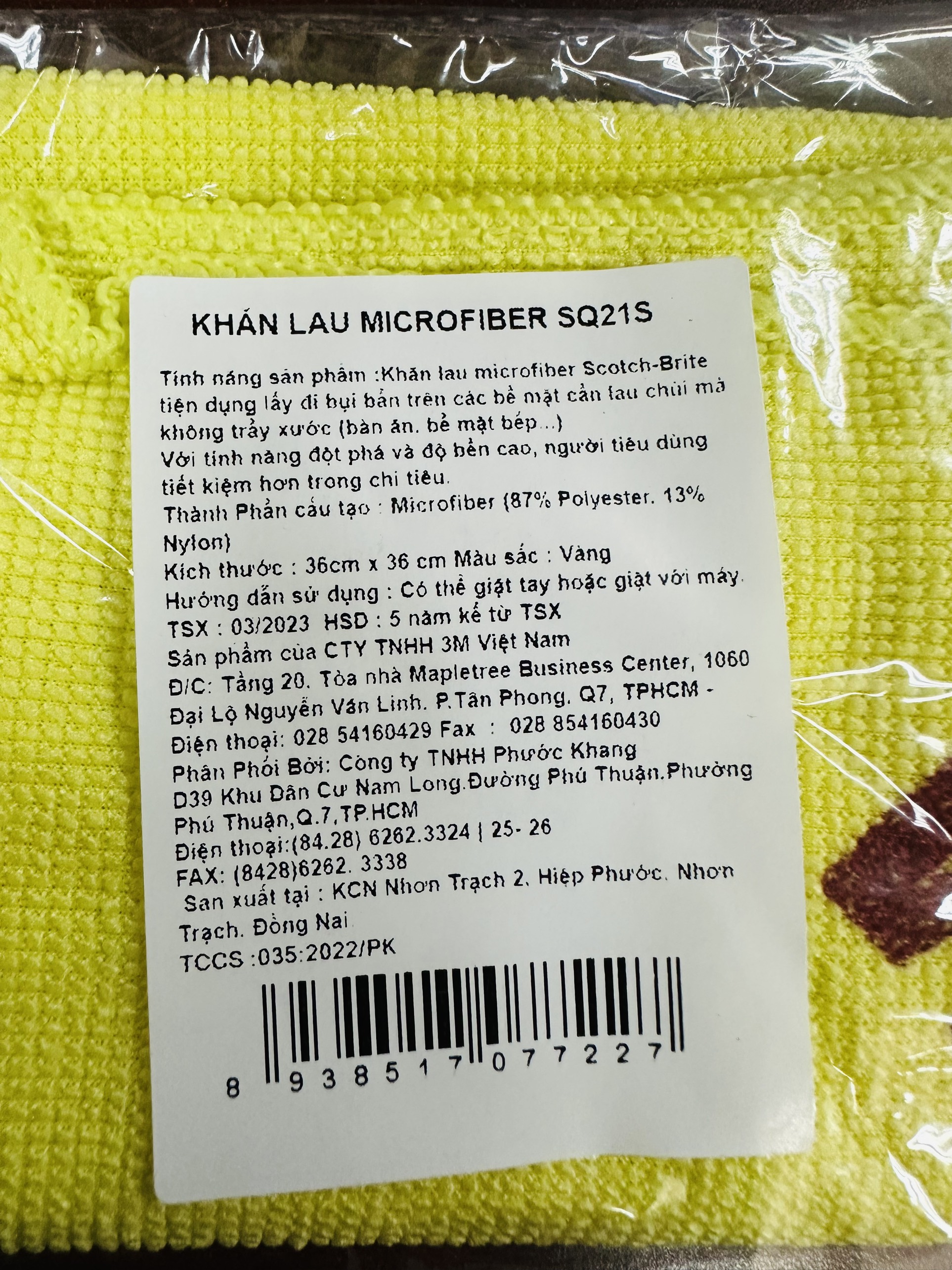 Thông số kỹ thuật Khăn lau ô tô chuyên dụng Microfiber 3M 36x36cm - màu vàng