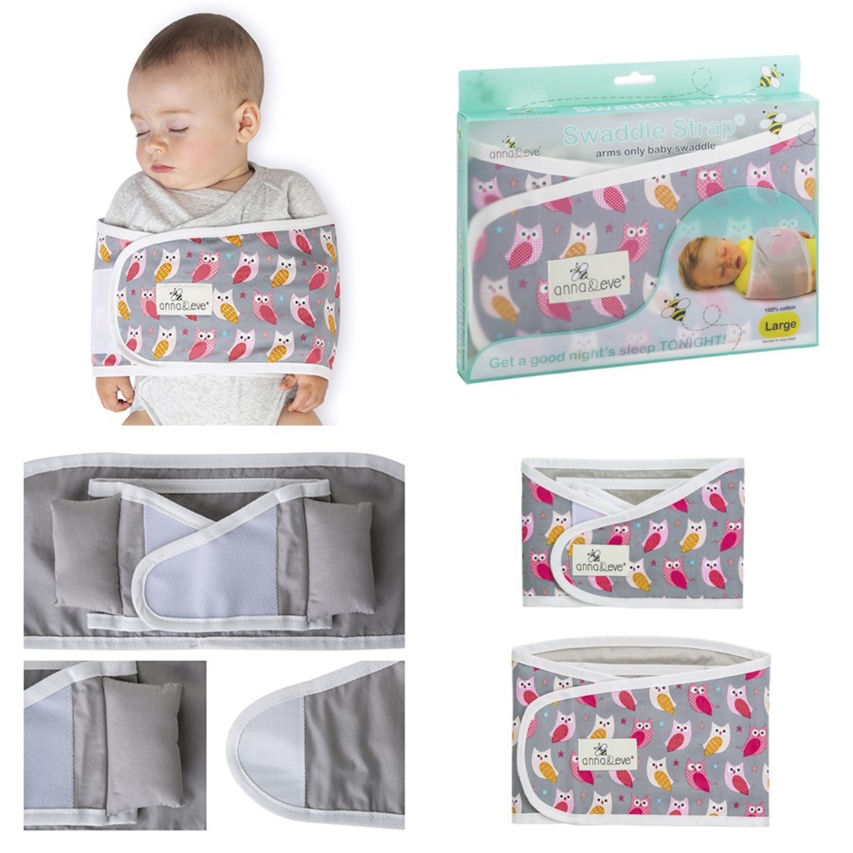 - Bên trong khăn có 2 đệm đỡ tay bé, giữ tay bé ở đúng vị trí khi quấn khăn.