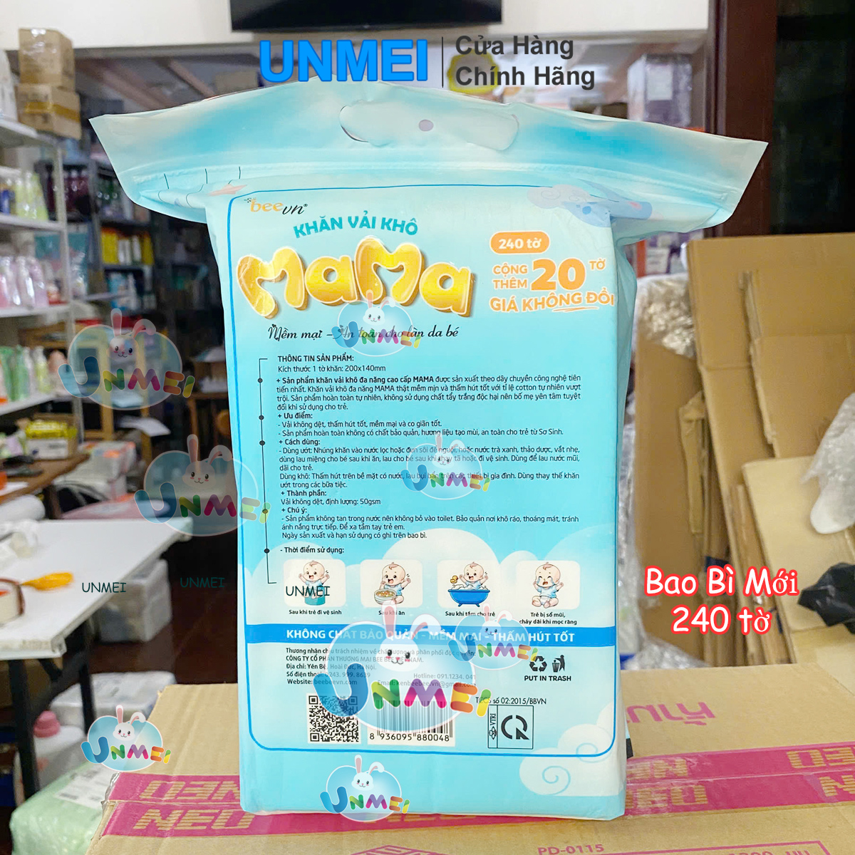 Thông số kỹ thuật Khăn vải khô đa năng Mama 240 tờ