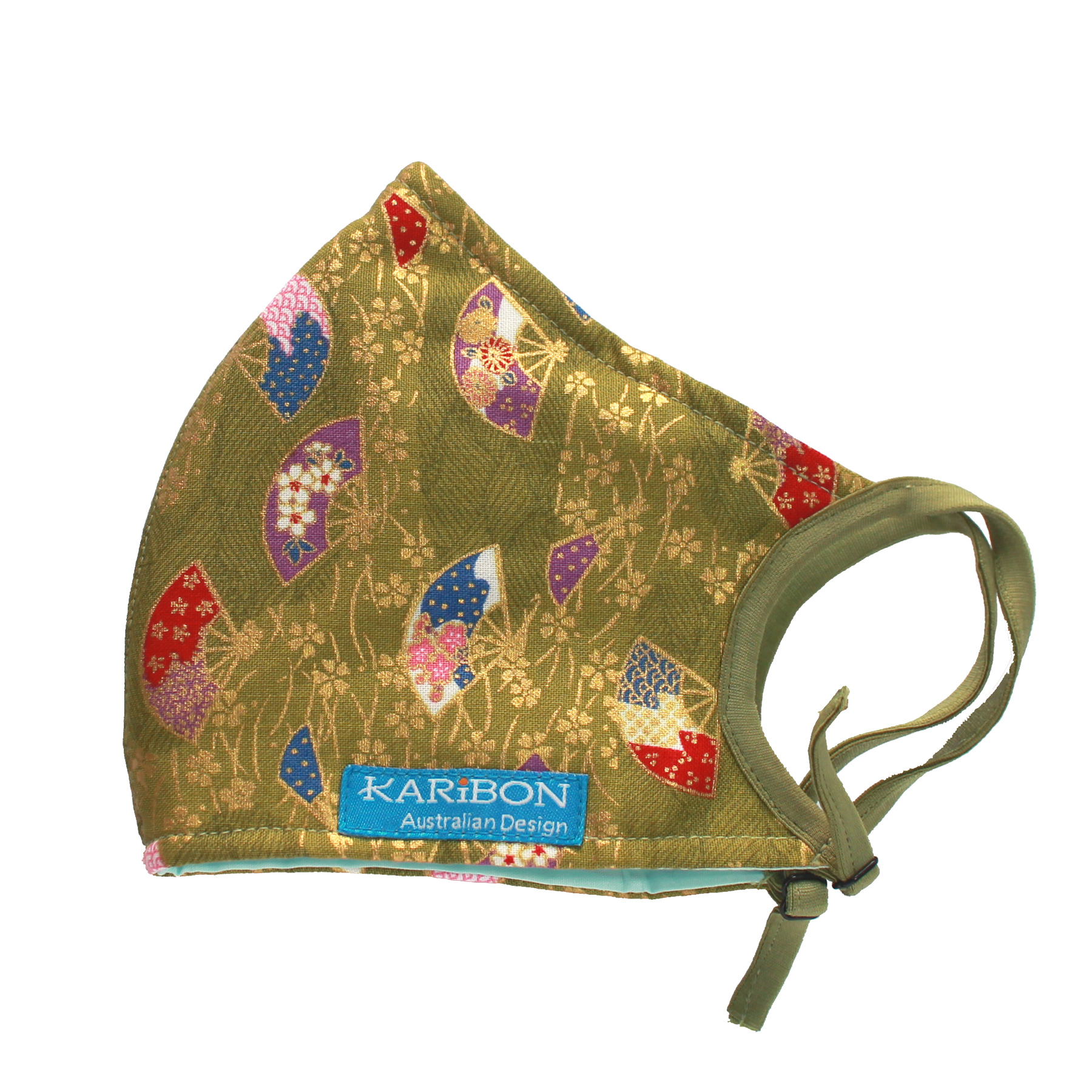Khẩu trang Karibon Cotton họa tiết quạt giấy nền vàng