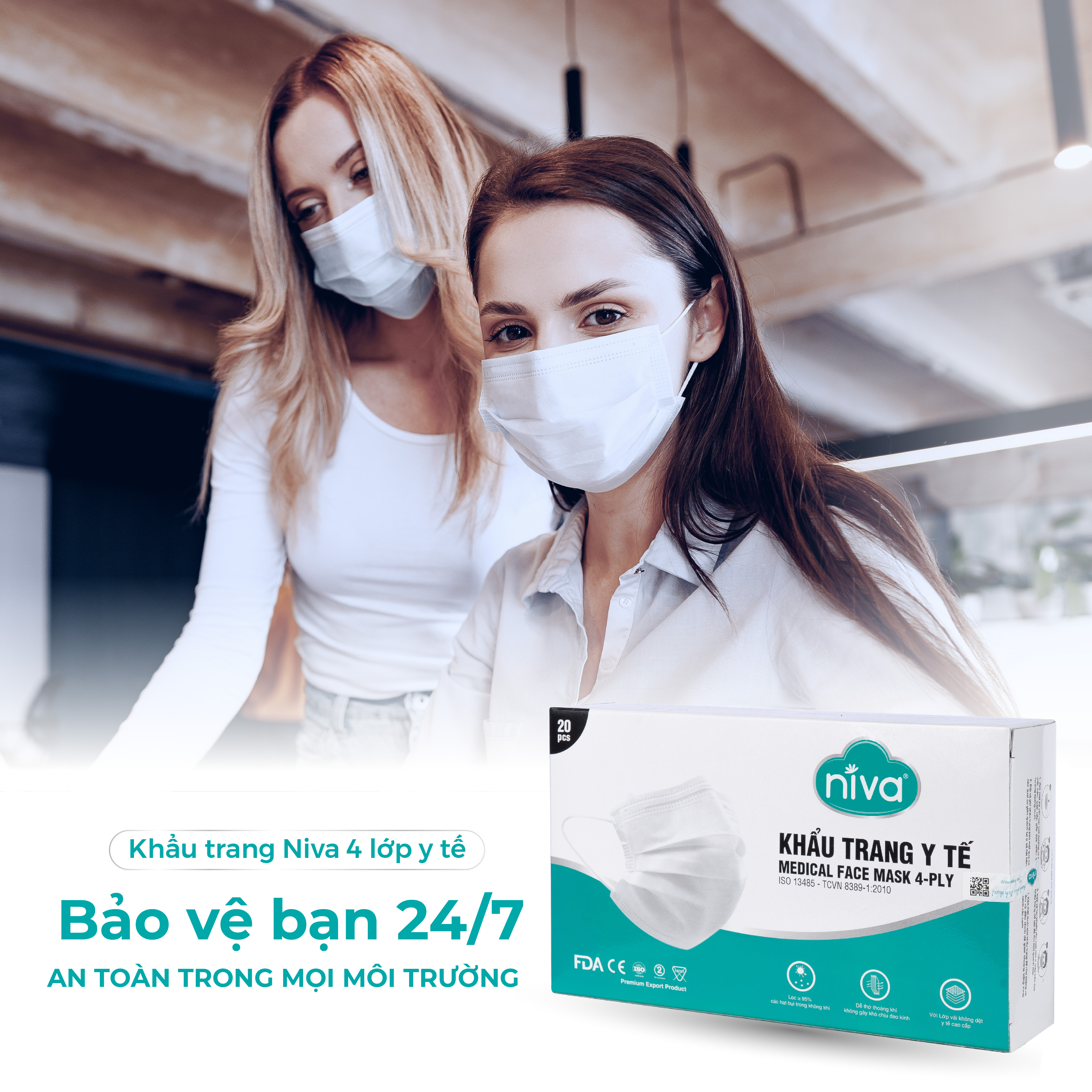 HỘP KHẨU TRANG Y TẾ 4 LỚP NIVA (HỘP 20 CÁI)