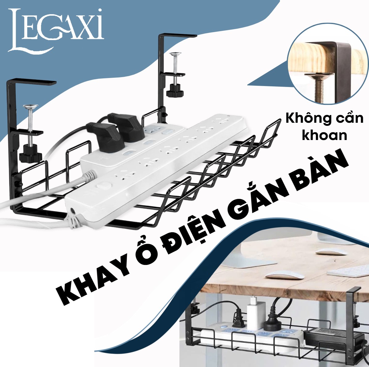 - Giúp sắp xếp gọn gàng ẩn dây điện dưới gầm bàn, tiết kiệm không gian.