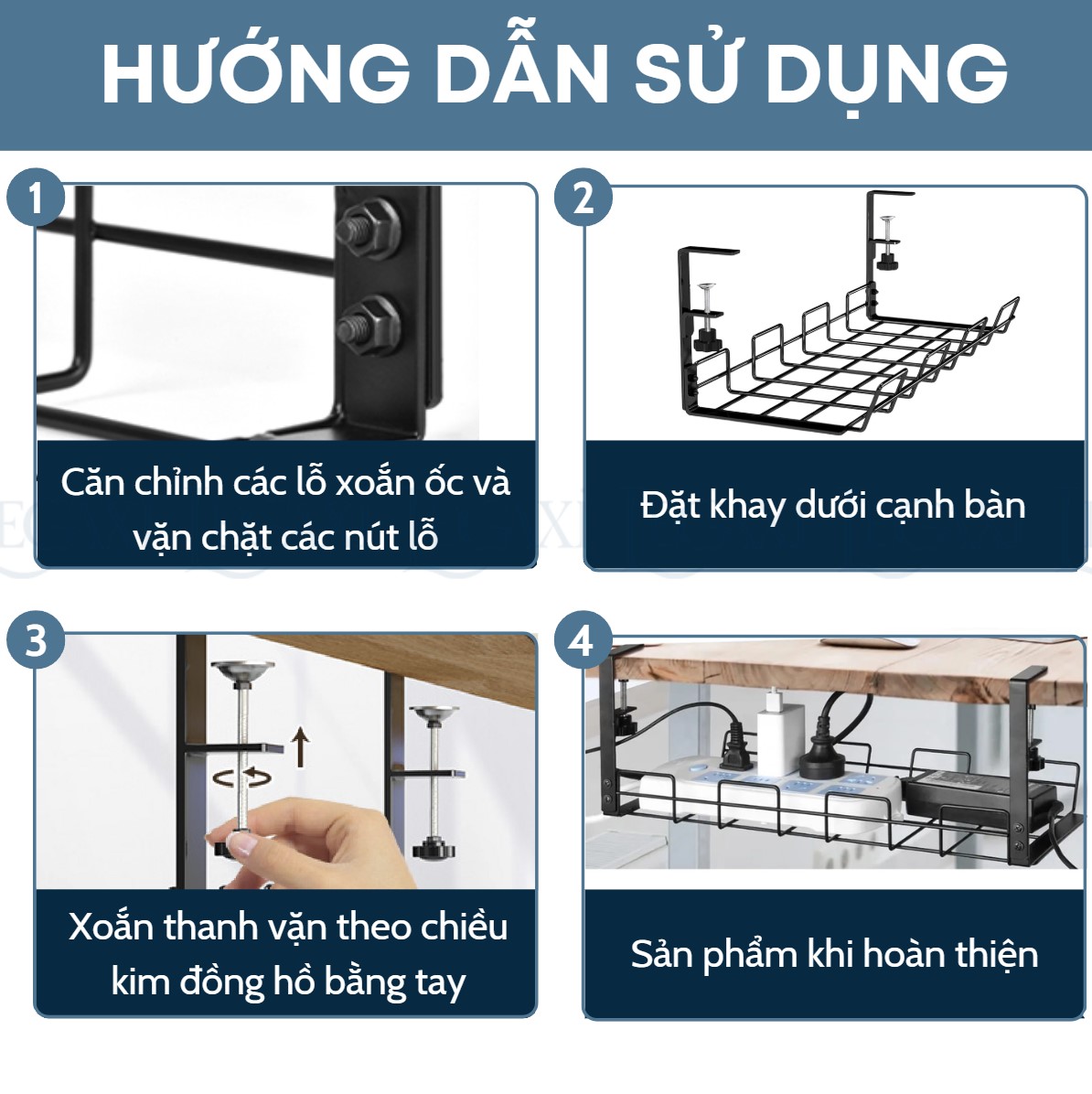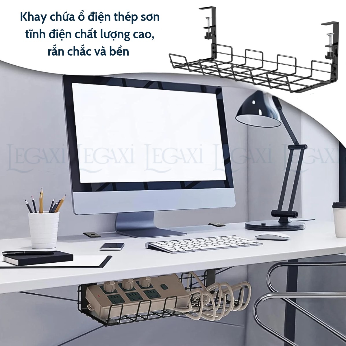 - Thích hợp để đỡ các vật dụng nhỏ dưới bàn như ổ điện, phích cắm và dây điện.