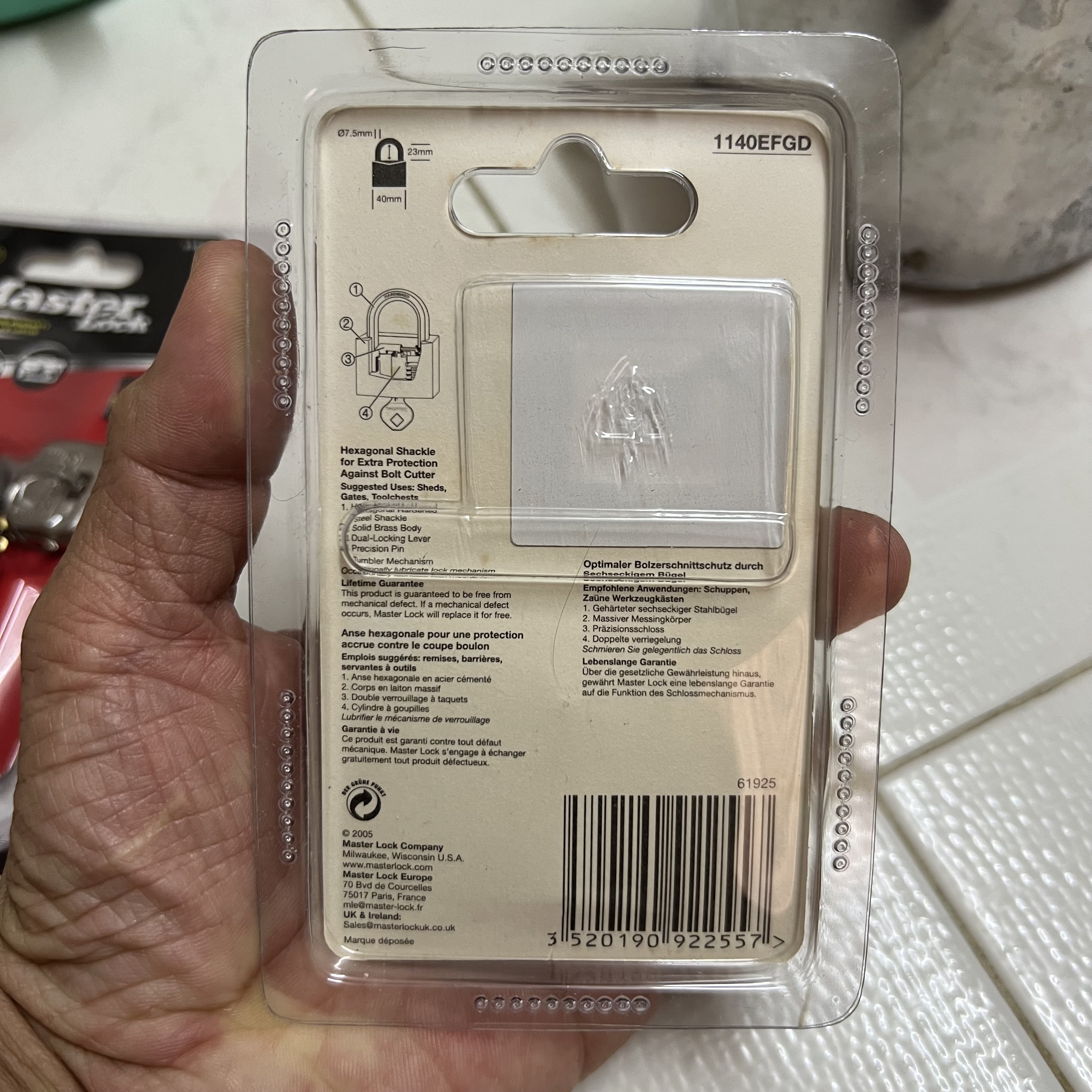 - Khóa Móc Master Lock 1140EFGDRF (40mm) với thân khóa làm bằng đồng solid tăng độ bền.