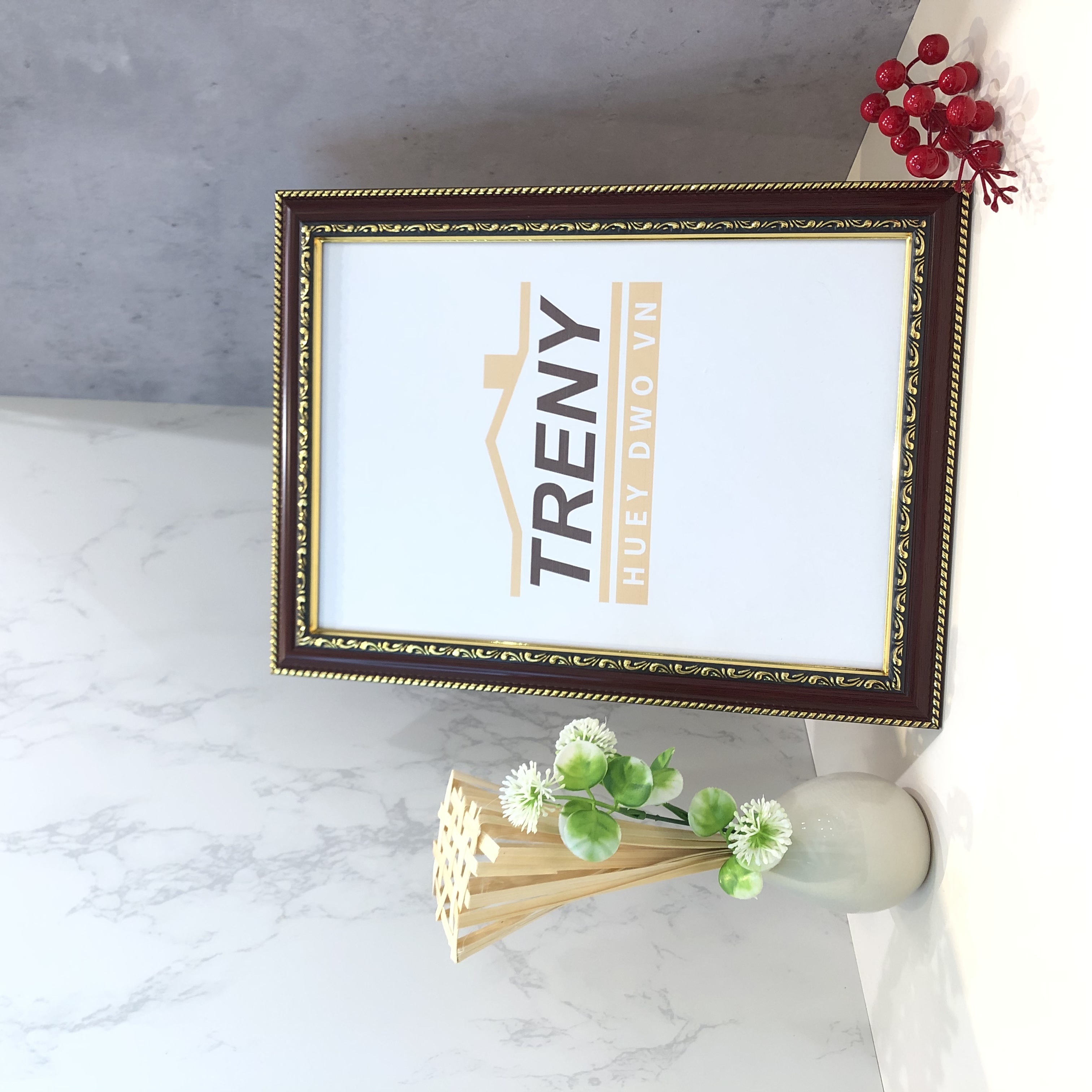 - Viền hoa văn classic nâu: Khung có màu nâu kết hợp với viền hoa văn màu vàng nổi bật