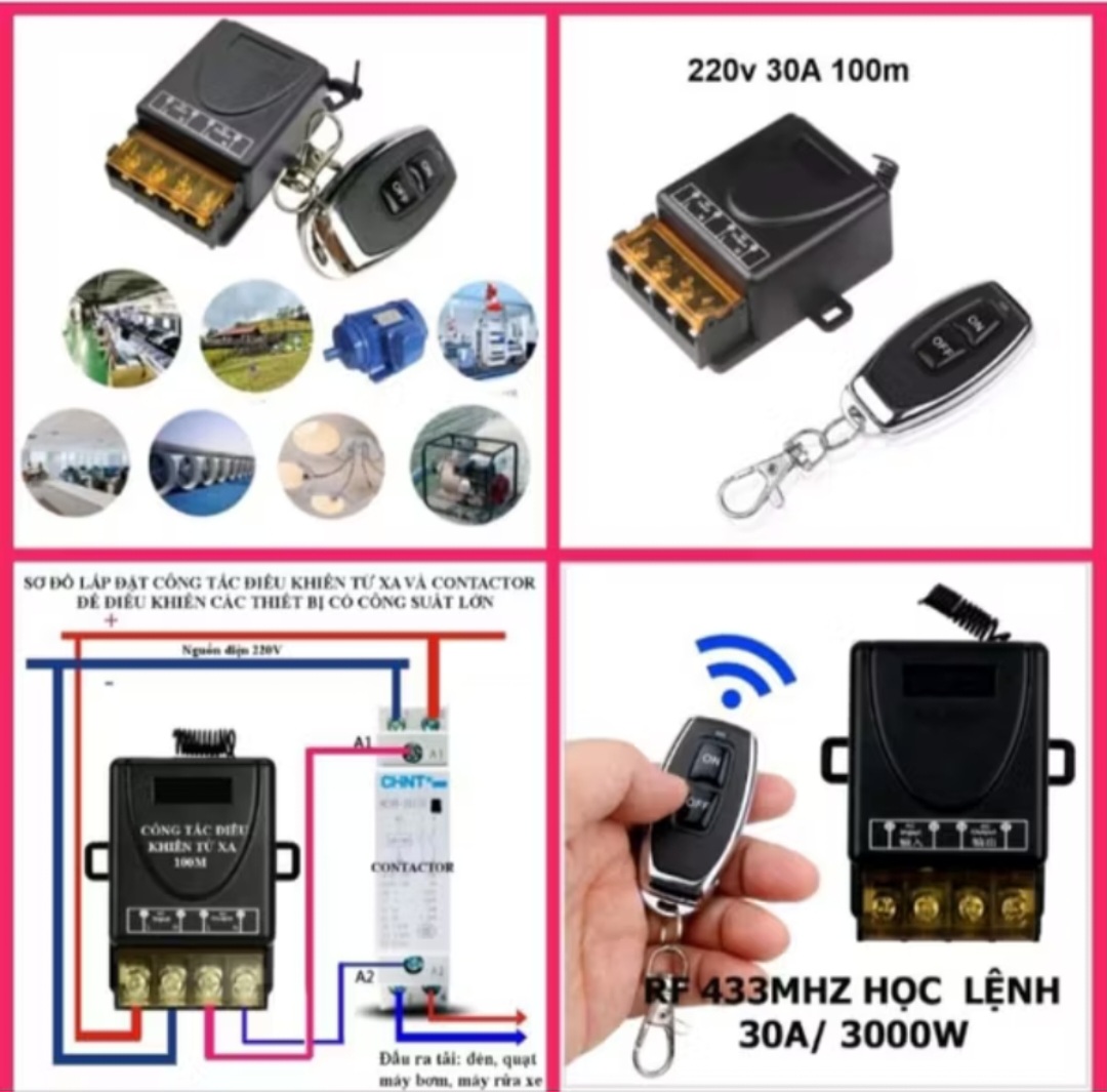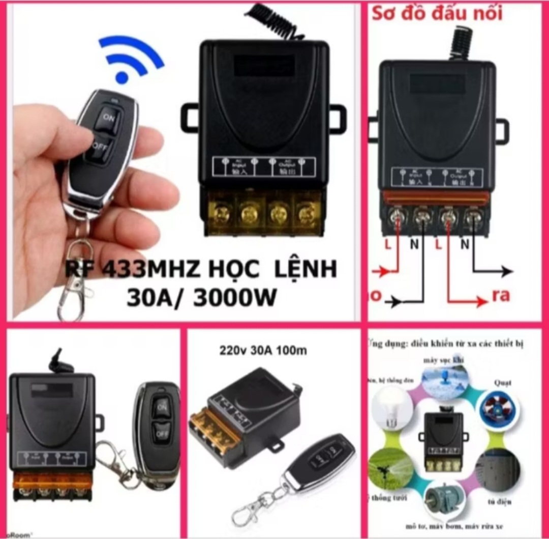 Dùng để điều khiển đóng ngắt thiết bị điện từ xa như: đèn, quạt, máy bơm nước ….vvvv với công suất tải tối đa 3000W hoặc có dòng khởi động tối đa 30A.