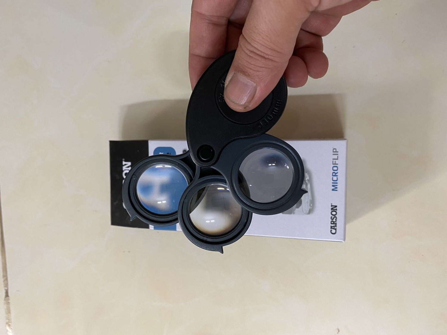 Sản phẩm kính lúp quang học Carson nhỏ gọn, di động, có thể gấp, phóng đại với 3 độ phóng đại khác nhau.