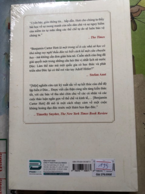 “Benjamin Carter Hett là một trong số ít các nhà sử học có khả năng suy nghĩ thấu đáo và biết cách kể một câu chuyện hay - mà không cần đơn giản hóa nó. Cuốn sách của ông đã giải quyết một trong những câu hỏi thú vị nhất lịch sử nước Đức: Làm thế nào mà một quốc gia có học thức và phát triển như Đức lại có thể rơi vào tay Adolf Hitler?” – Stefan Aust.