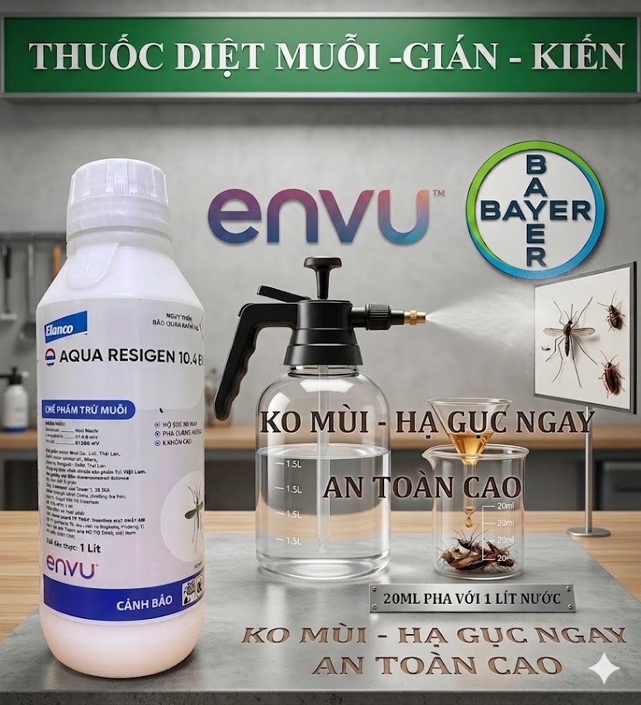 Thông số kỹ thuật (Ko mùi) Hàng ENVU- Thuốc Aqua Resigen 10.4 EW diệt muỗi, kiến, gián, rệp, bọ xít.... Bộ Y tế cho phép lưu hành