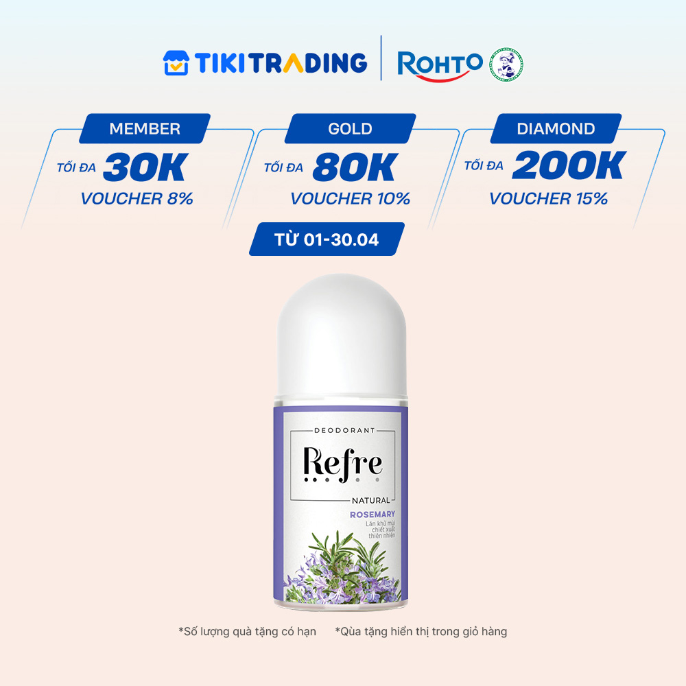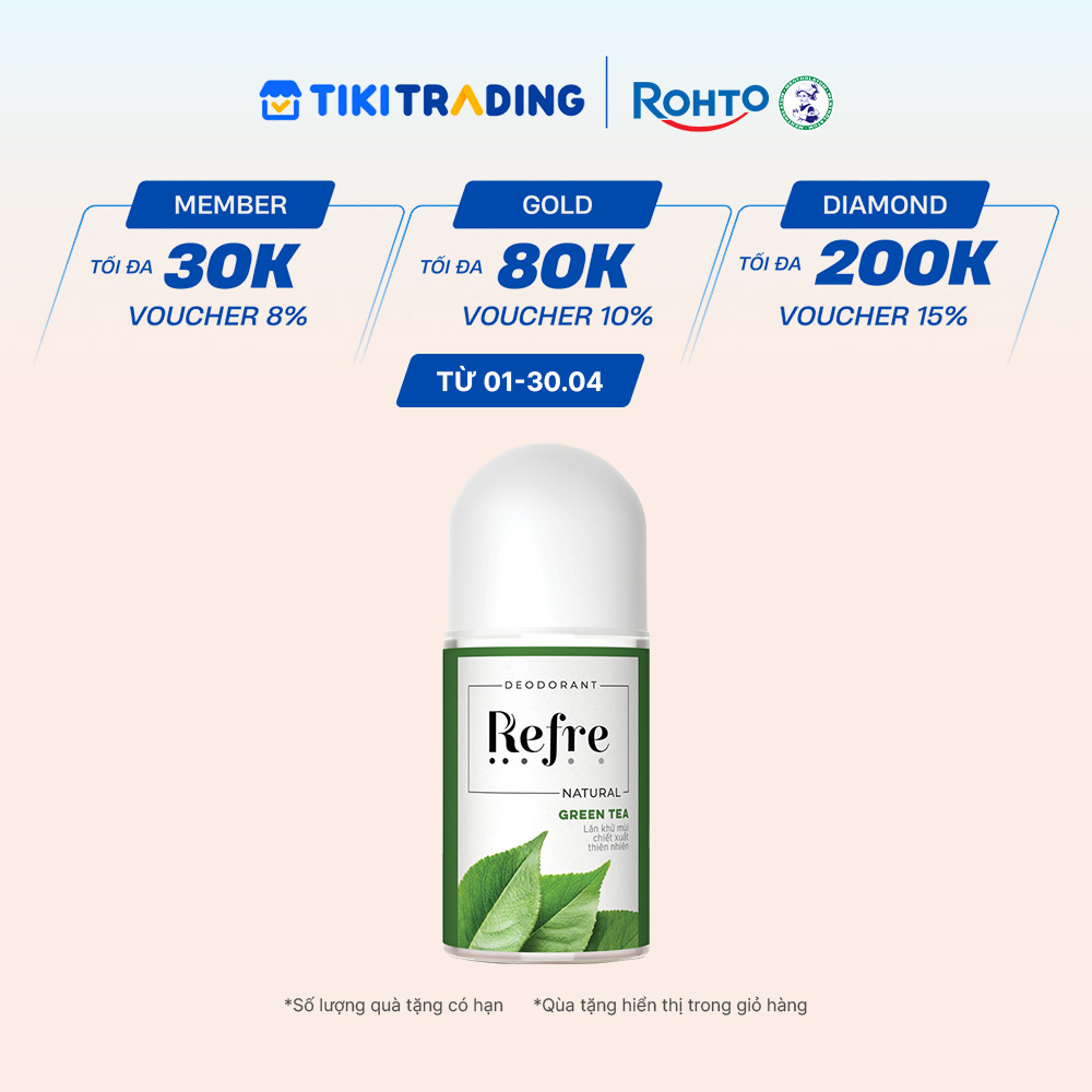 - Lăn khử mùi chiết xuất thiên nhiên Refre Natural giúp khử mùi cơ thể suốt cả ngày và giảm tiết mồ hôi hiệu quả nhờ các chiết xuất từ thiên nhiên.
