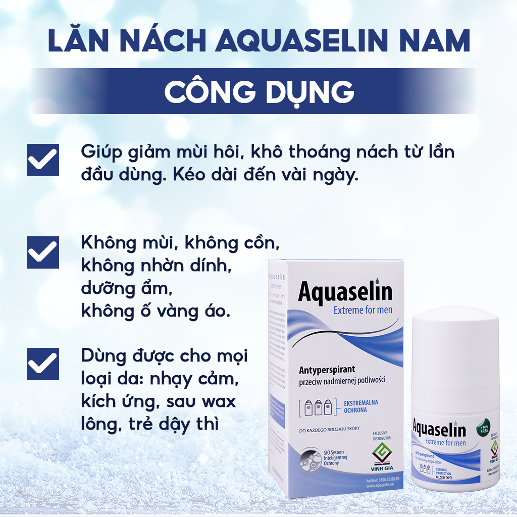 Lăn khử mùi Aquaselin dành cho nam giới dùng cho vùng nách đổ mồ hôi & mùi hôi từ vừa phải đến nhiều.