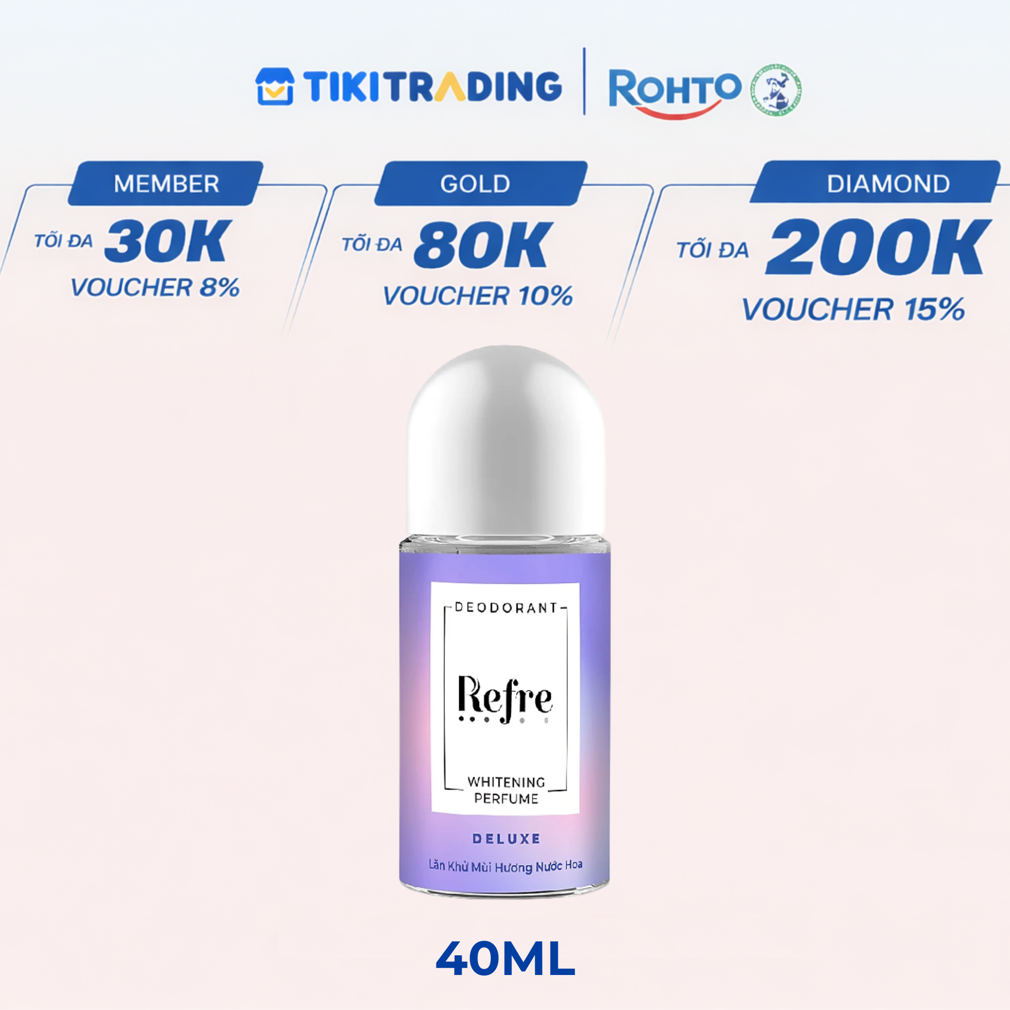 Thông số kỹ thuật Lăn Khử Mùi Dưỡng Trắng Hương Nước Hoa Refre Whitening Deluxe Hương Sang Trọng (40ml)
