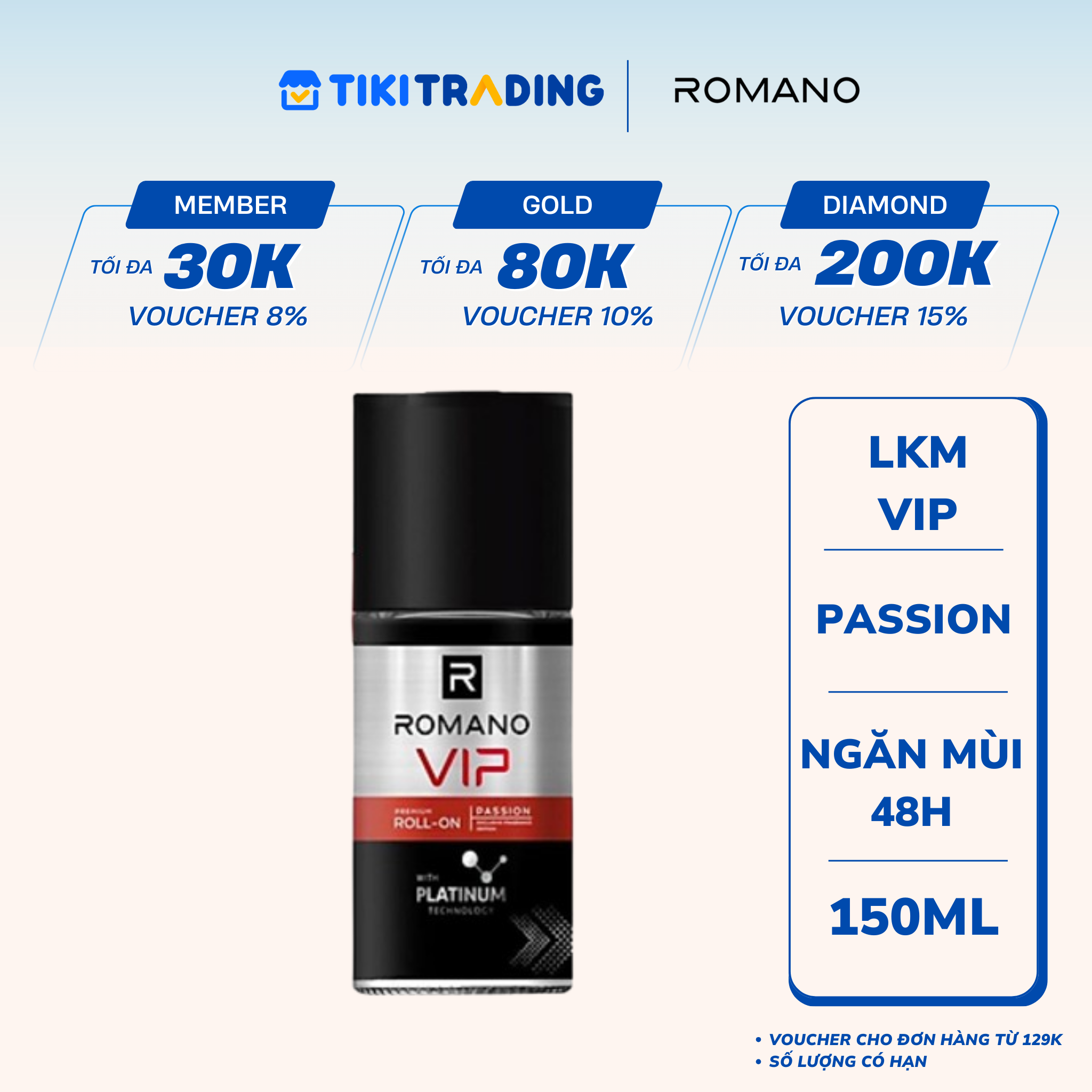 Thông số kỹ thuật Lăn Khử Mùi Hương Vip Romano 50Ml