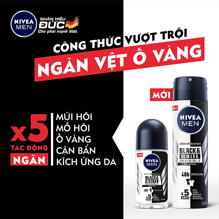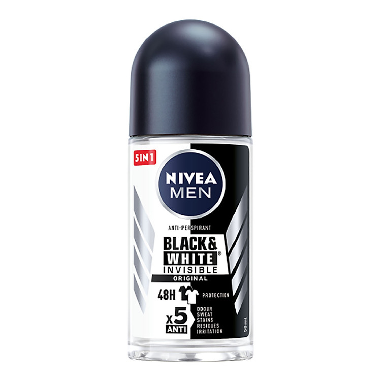 Lăn Ngăn Mùi NIVEA MEN Black &White - 48H Ngăn Mồ Hôi - Ngăn Vệt Ố Vàng (50 Ml)