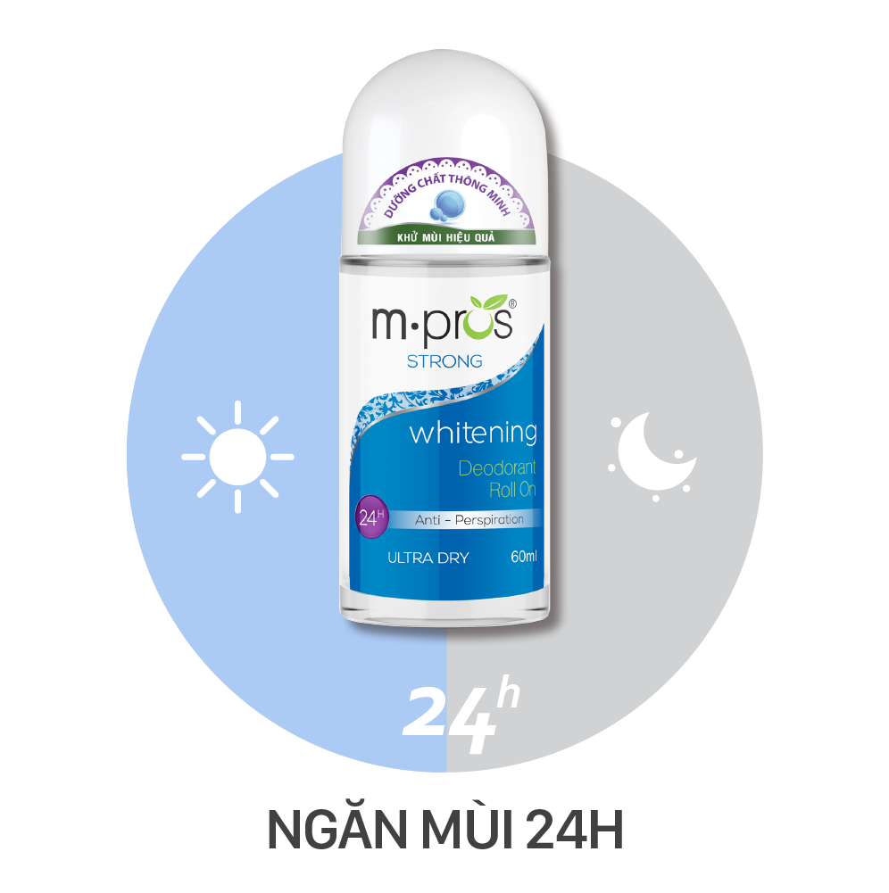 Lăn khử mùi hương nước hoa M.Pros là mùi hương mới trong bộ sưu tập lăn khử mùi M.Pros Whitening. Với hương thơm tươi mới, ngọt ngào cùng khả năng kháng khuẩn, ngăn ngừa tiết mồ hôi giúp vùng da dưới cánh tay luôn khô thoáng, trắng mịn và thơm mát suốt ngày dài.