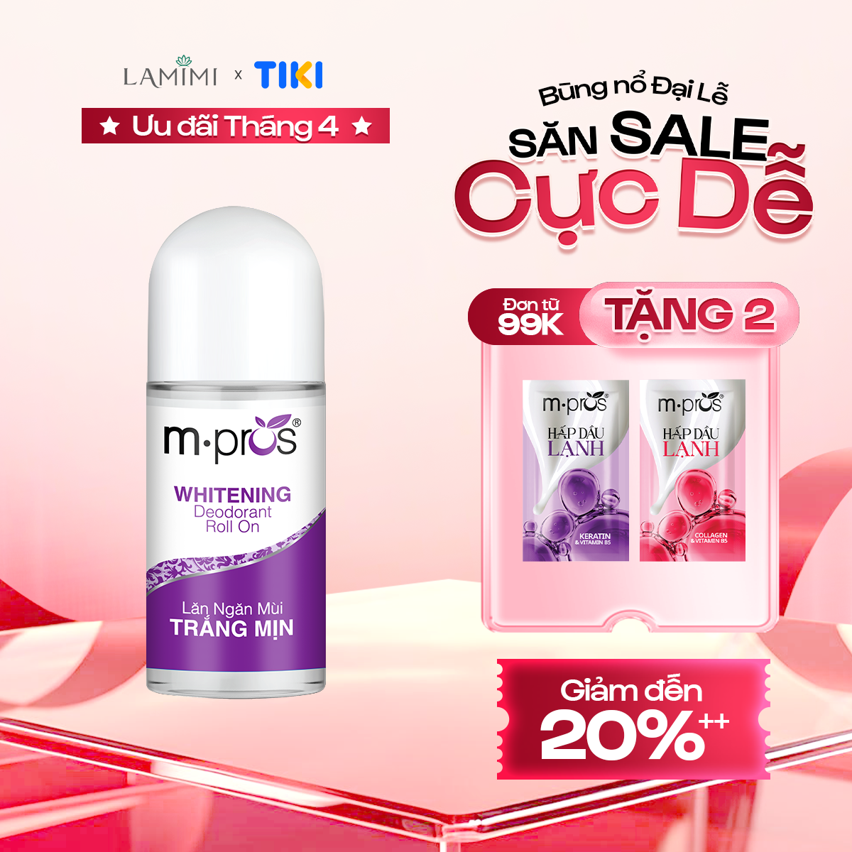 Lăn khử mùi hương nước hoa M.Pros là mùi hương mới trong bộ sưu tập lăn khử mùi M.Pros Whitening. Với hương thơm tươi mới, ngọt ngào cùng khả năng kháng khuẩn, ngăn ngừa tiết mồ hôi giúp vùng da dưới cánh tay luôn khô thoáng, trắng mịn và thơm mát suốt ngày dài.