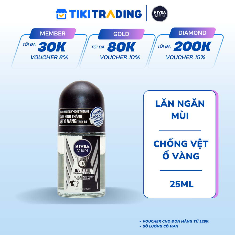 Nivea Men Black&White là sản phẩm khử mùi dành cho nam dạng chai lăn với sức mạnh chống vệt ố vàng trên áo trắng và vệt trắng trên áo sẫm màu.