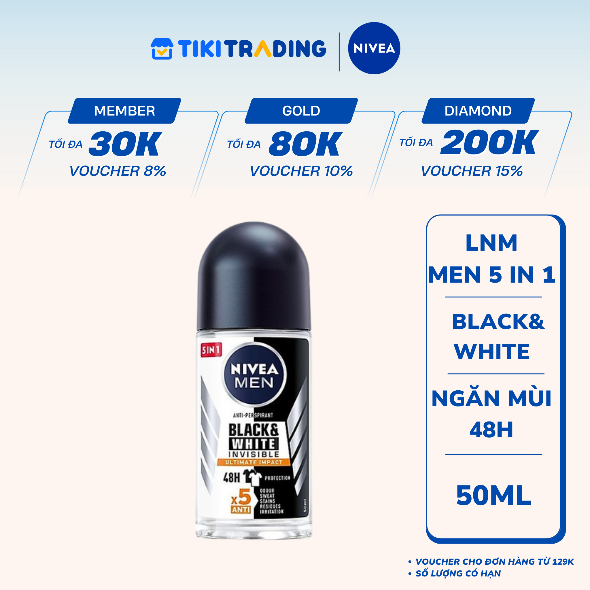 Thông số kỹ thuật Lăn Ngăn Mùi NIVEA MEN Black&White Ngăn Vệt Ố Vàng Vượt Trội - Hương Mạnh Mẽ (50 ml) - 85392