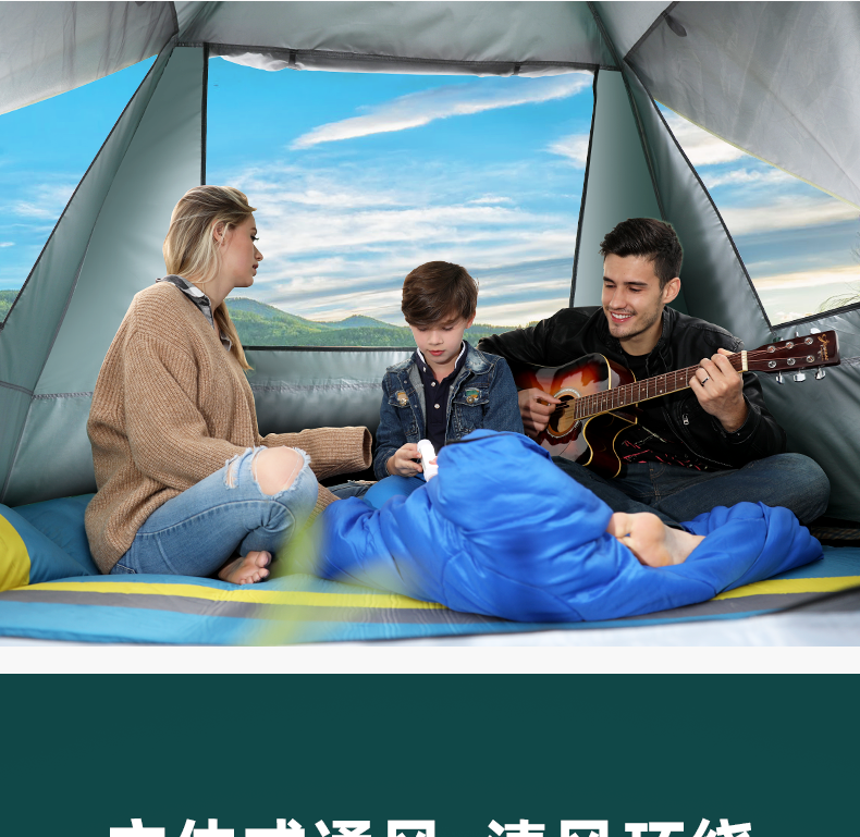 - Vải lều du lịch 3 đến 4 người bằng chất dù chống nước cực tốt giúp bạn không bị ướt bởi cơn mưa, sương mù và bảo vệ bạn khỏi côn trùng cắn