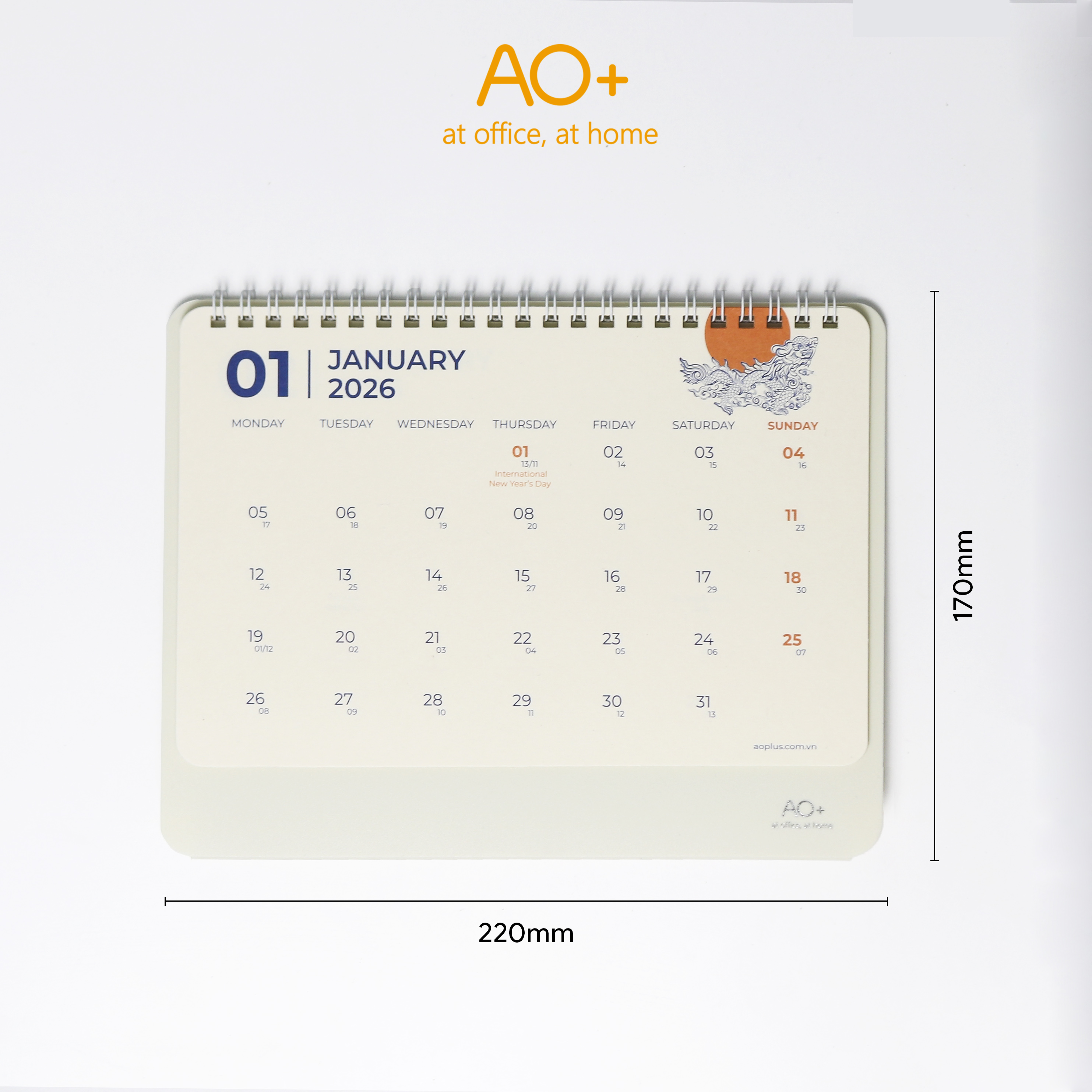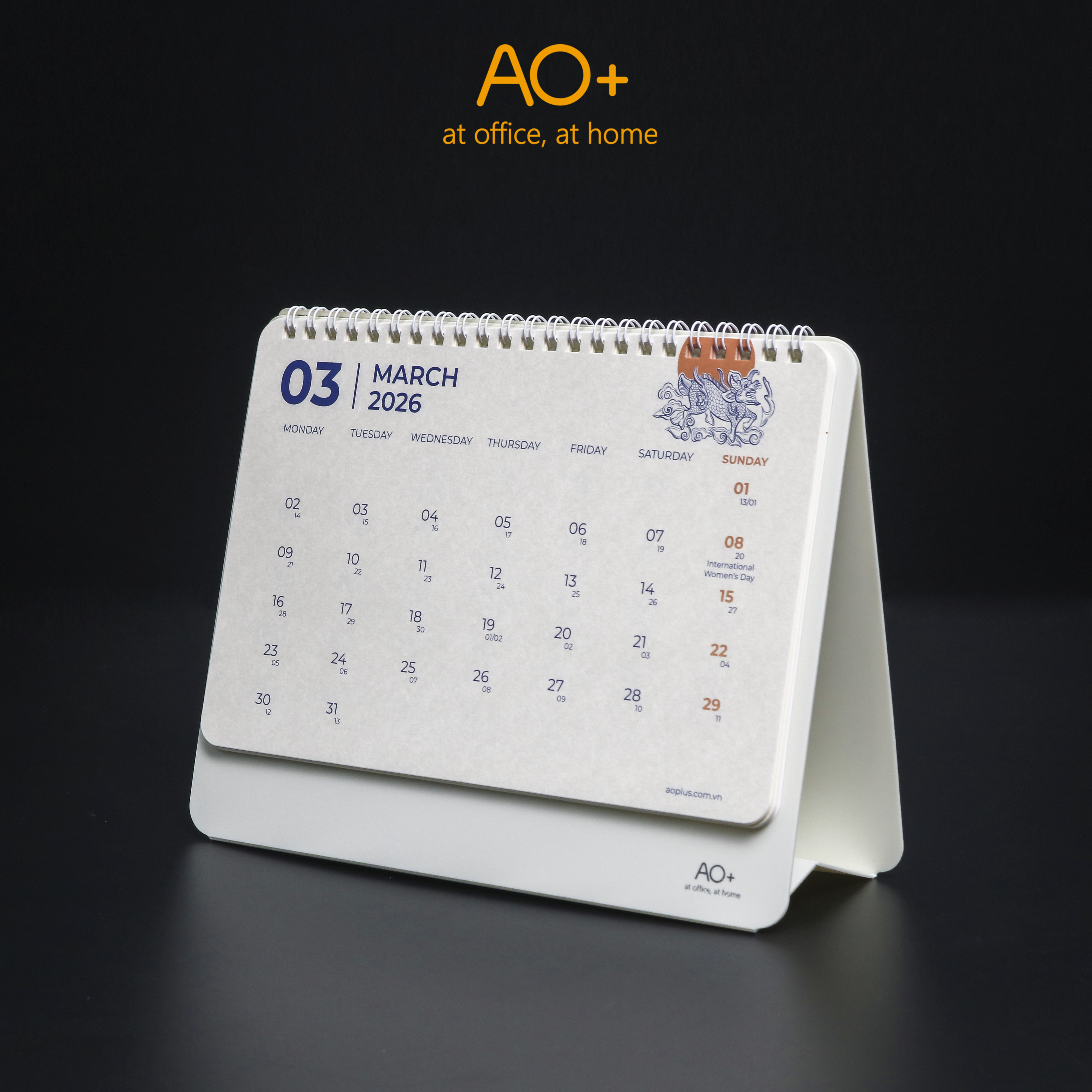 - Tên sản phẩm: Lịch để bàn 2026 AO+ có lịch âm họa tiết hoa văn vốn cổ