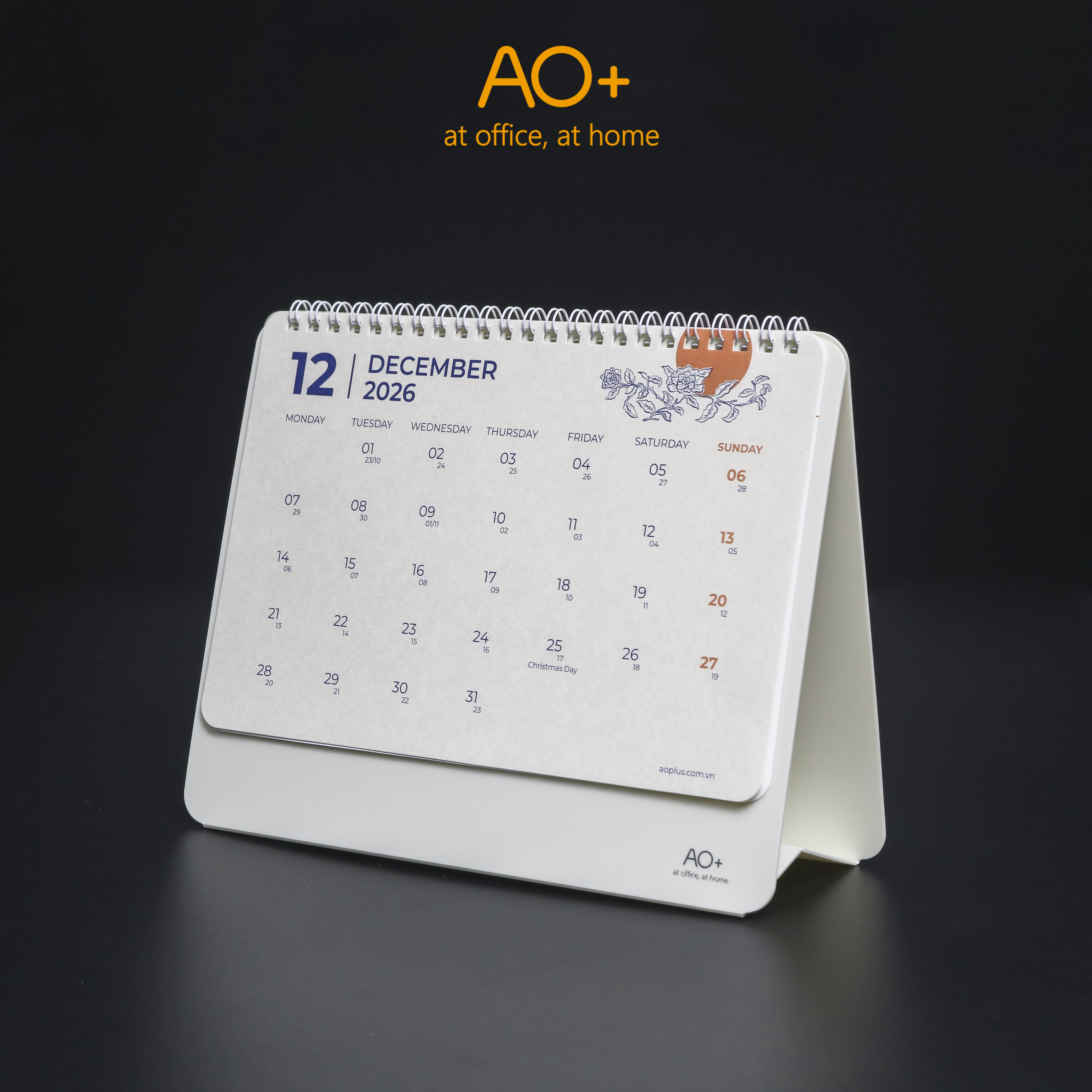 Tên sàn phẩm: Lịch để bàn 2026 AO+ có lịch âm họa tiết hoa văn vốn cổ