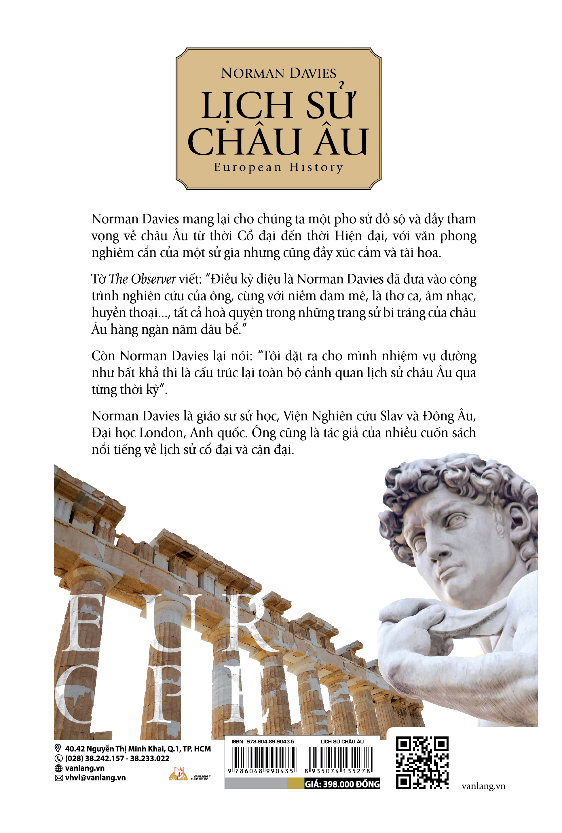 Norman Davies mang lại cho chúng ta một pho sử đồ sộ và đầy tham vọng về châu Âu từ thời Cổ đại đến thời Hiện đại, với văn phong nghiêm cẩn của một sử gia nhưng cũng đầy xúc cảm và tài hoa.