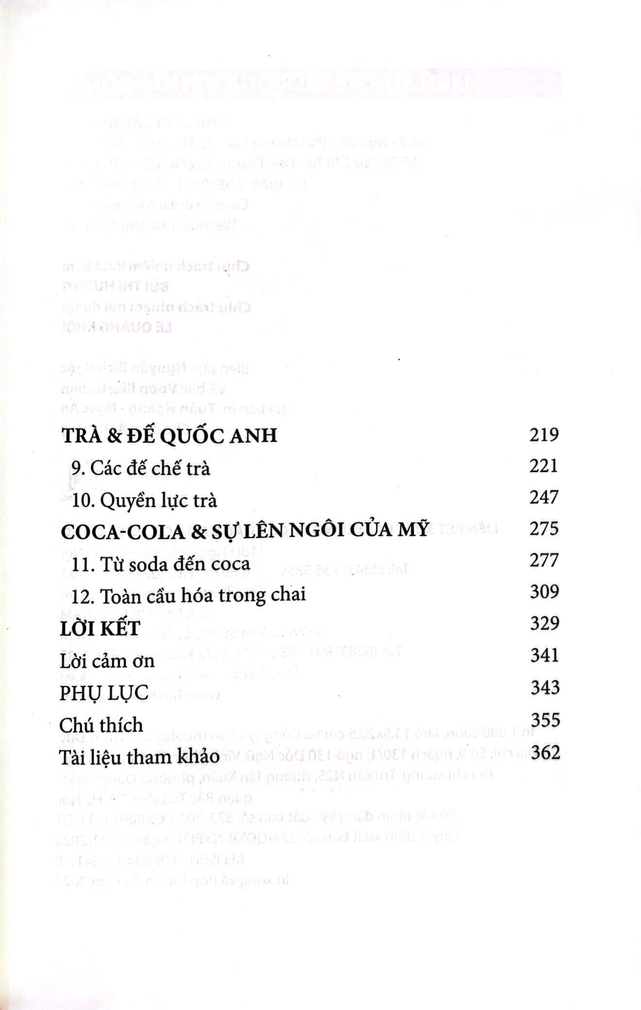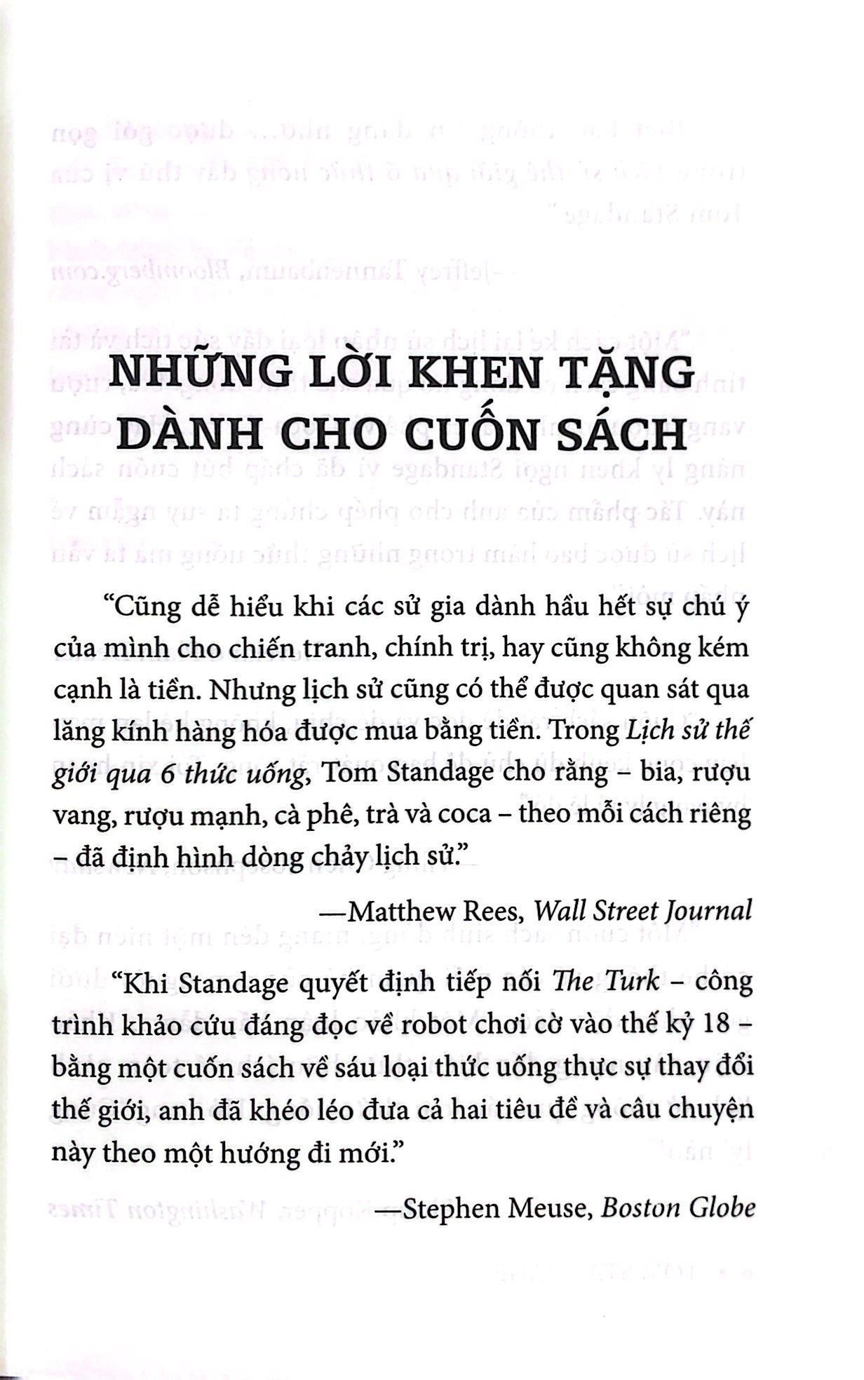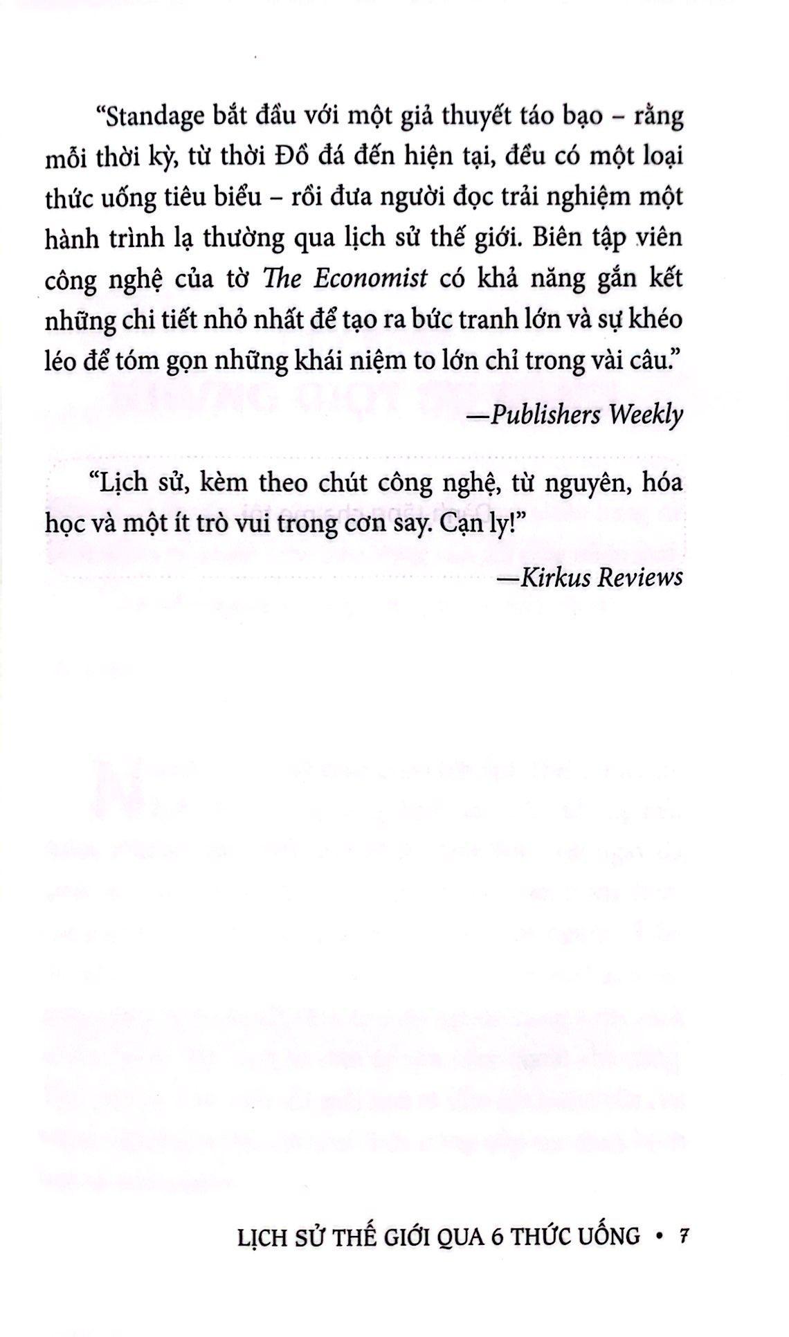 Cuốn sách đưa chúng ta ngược dòng thời gian khám phá những cánh đồng ngũ cốc mênh mông ở Lưỡng Hà và Ai Cập, vườn nho bạt ngàn nơi thành Rome, những đồi cà phê trù phú ở Ả Rập cùng sự phổ biến rộng rãi của trà Trung Quốc, và cuối cùng là sự lên ngôi của Hoa Kỳ cùng nước giải khát coca-cola.