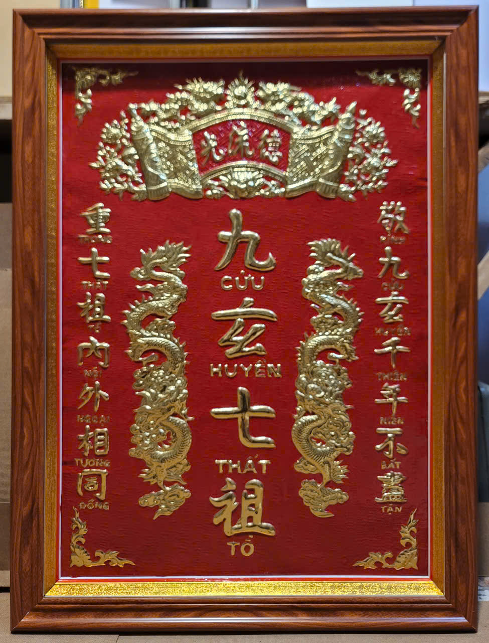 Sản phẩm tranh liễn thờ tổ tiên bằng đồng vàng nguyên chất 100% liền tấm.