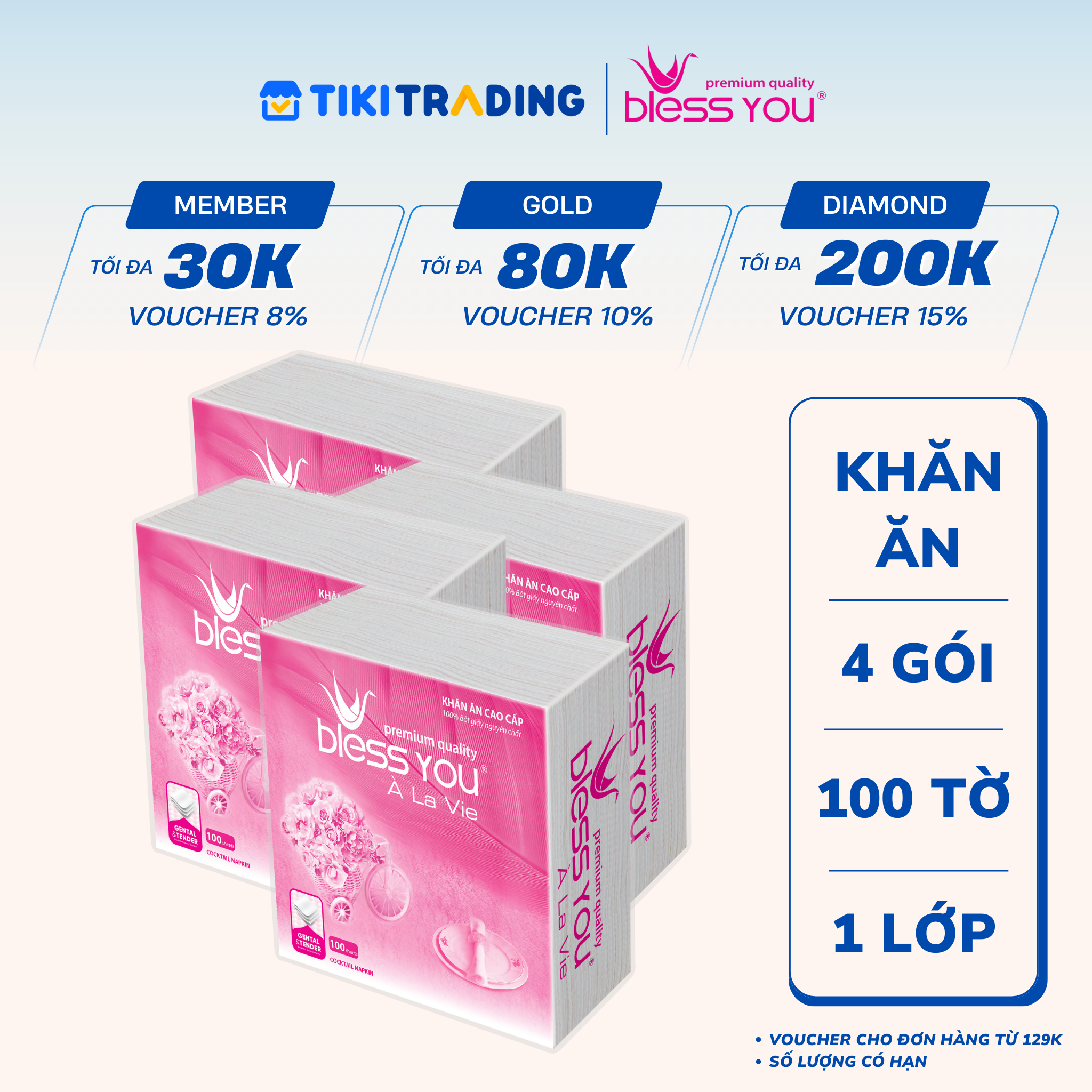 Thông số kỹ thuật Lốc 4 Gói Khăn Ăn Napkin Bless You Alavie 33x33