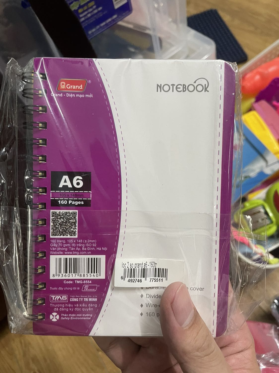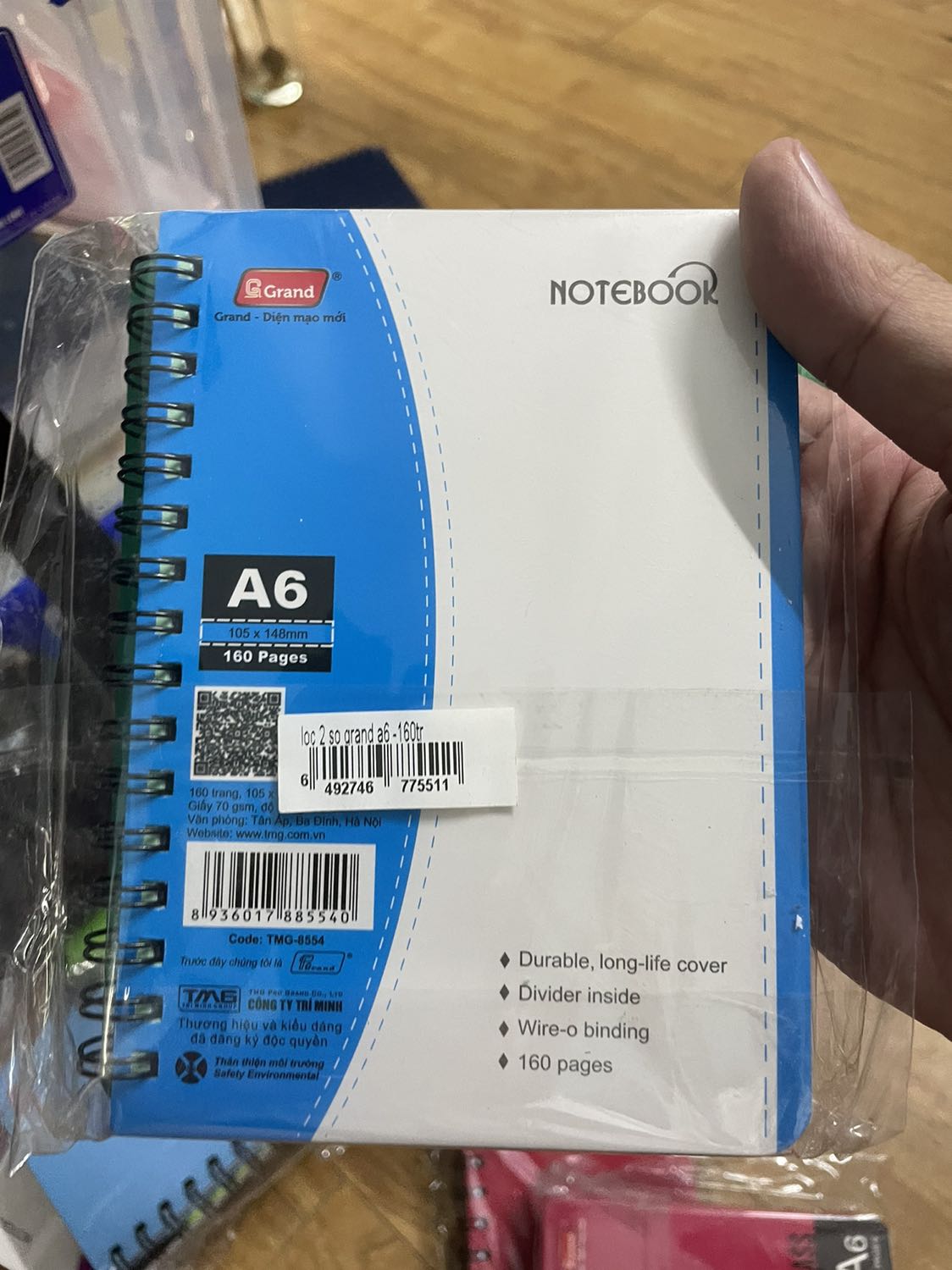 Thông số kỹ thuật Lốc 2 Sổ Lò Xo Grand 8554 A6 - 160 Trang