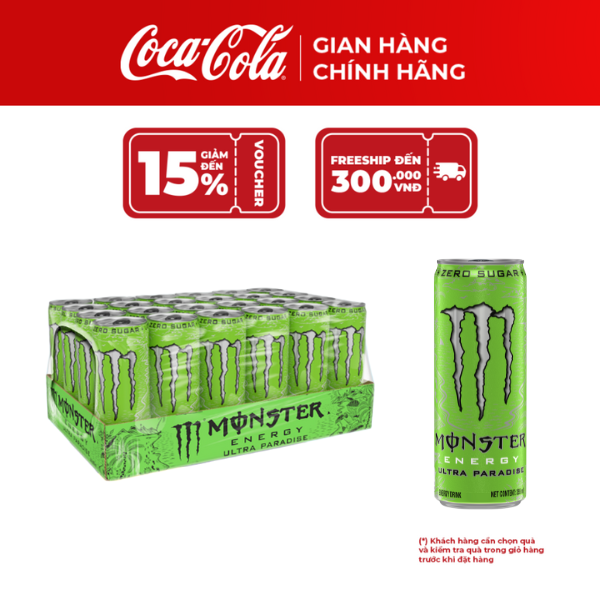 Thông số kỹ thuật [SALE 15.12] Lốc 24 Lon Monster Energy Ultra Paradise 355ml – Nước Tăng Lực Giải Khát, Bùng Năng Lượng, Coca-Cola Official Store