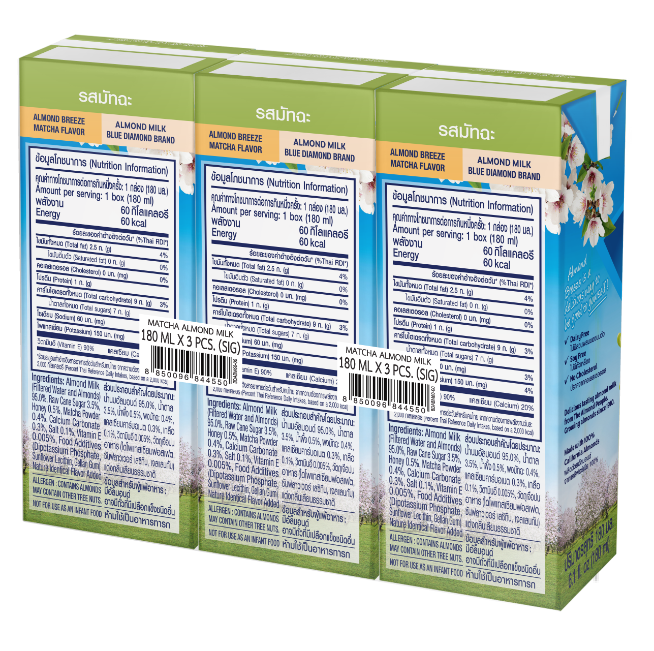 Thông số kỹ thuật Sữa hạt hạnh nhân ALMOND BREEZE vị Matcha 180ml x 3 Hộp