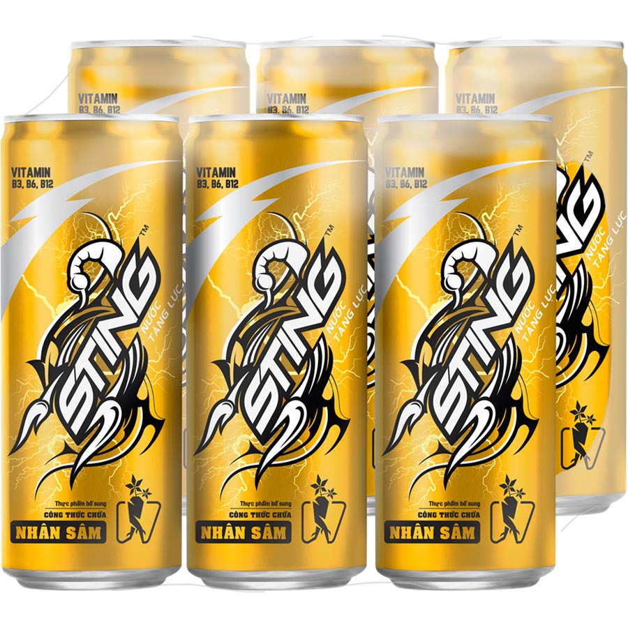 - Lốc 6 Lon Nước Tăng Lực Sting Vàng (320ml/Lon) - Đang mệt mỏi, uể oải? Nạp ngay Sting Vàng - Bật Gaz Sảng Khoái, Sung Sức Tức Thì!