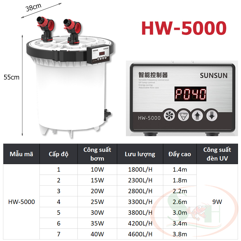 THÔNG SỐ KỸ THUẬT LỌC THÙNG SUNSUN FREQUENCY FILTER HW / ZW 3000 / 5000: