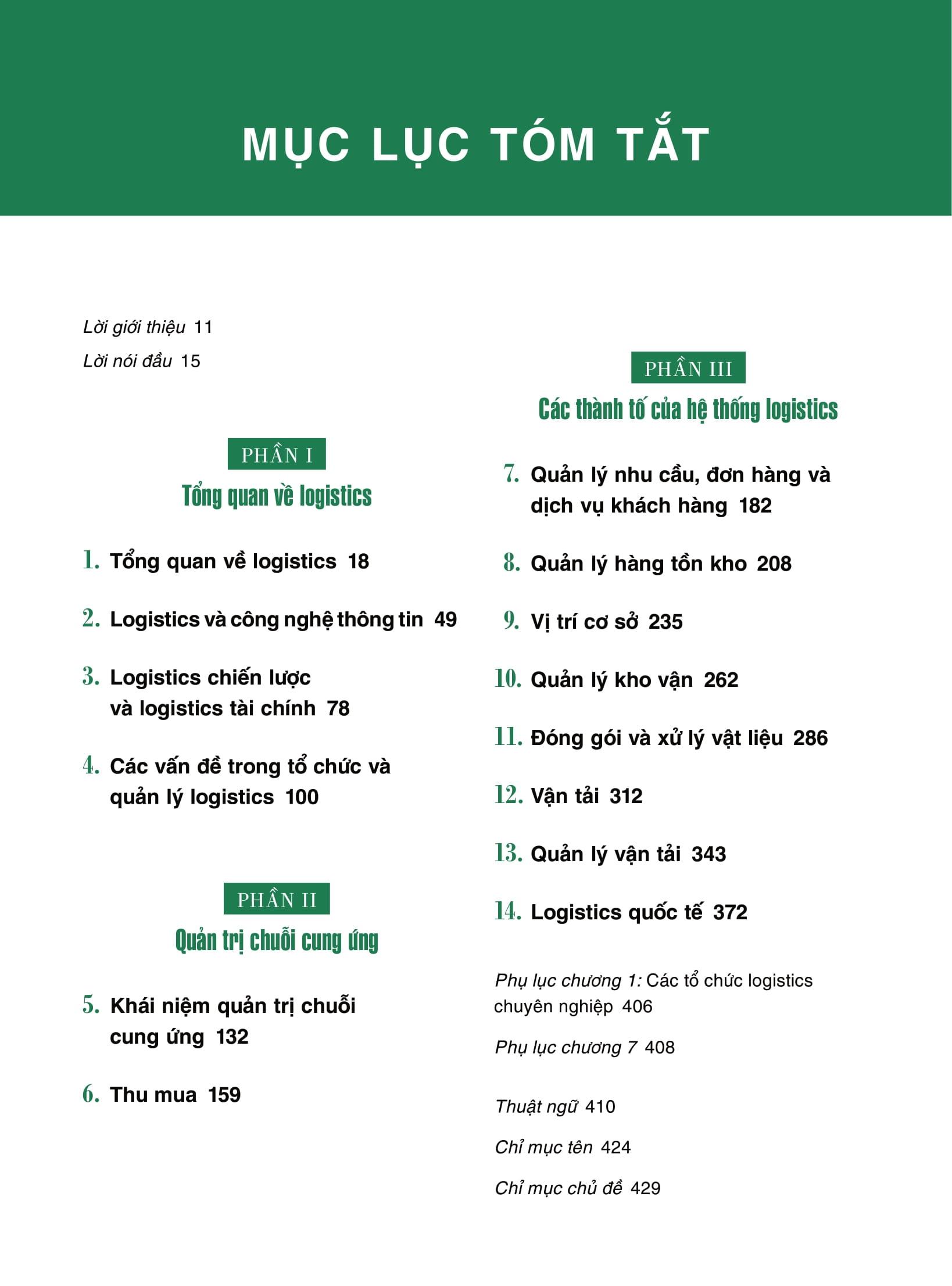 Logistics và Quản trị chuỗi cung ứng là một cuốn “bách khoa toàn thư” mang đến những kiến thức, hướng dẫn đầy đủ nhất về Logistics và quản trị chuỗi cung ứng đương đại. Điều đó sẽ mang đến cho độc giả những thông tin và kiến thức chính xác, bổ ích nhưng vẫn vô cùng dễ dàng tiếp thu, giúp độc giả dễ dàng hơn trong việc tìm hiểu và nghiên cứu về ngành nghề “mắt xích phát triển kinh tế” này. Quyển textbook này sẽ giúp bạn nắm rõ từ kho vận đến giao nhận một cách dễ dàng với 3 phần chính: Tổng quan về Logistics, Quản trị chuỗi cung ứng và Các thành tố của hệ thống Logistics. Mỗi phần sẽ tiếp tục chia ra thành các mục nhỏ, bảo đảm sẽ giúp bạn hiểu tường tận từng ngõ ngách của Logistics và quản trị chuỗi cung ứng.