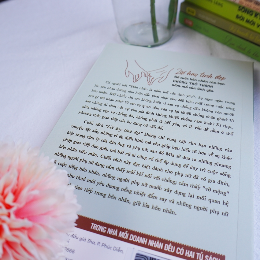 Bằng những kinh nghiệm và hiểu biết trong cuộc sống, tác giả Mễ Á - Một chuyên gia tâm lý học và hôn nhân gia đình nổi tiếng tại Trung Quốc đã đưa ra những phân tích đa chiều để giải mã tâm lý phía sau các hành vi trong tình yêu và hôn nhân thông qua cuốn sách “Lời hay ý đẹp - Để cuộc hôn nhân của bạn không trở thành nấm mồ của tình yêu", đưa tới độc giả những lời khuyên, ý tưởng thú vị, những bí quyết ứng xử trong mối quan hệ giữa hai giới, giúp mỗi người vợ thay đổi nhận thức, hóa giải mâu thuẫn, “làm mới” mối quan hệ và xây dựng hạnh phúc bền lâu thông qua 3 phần: