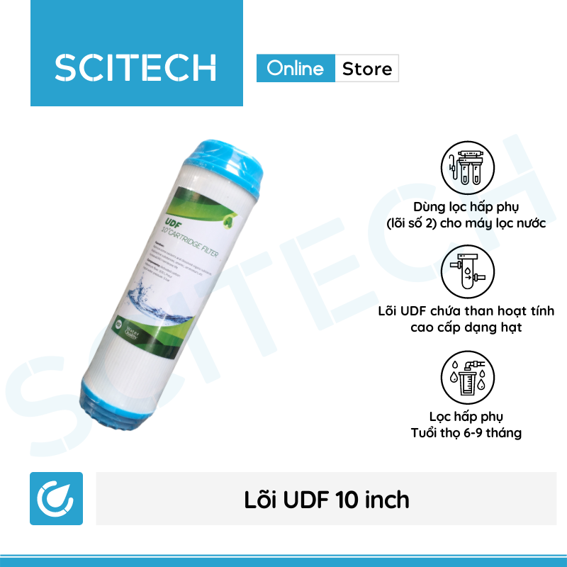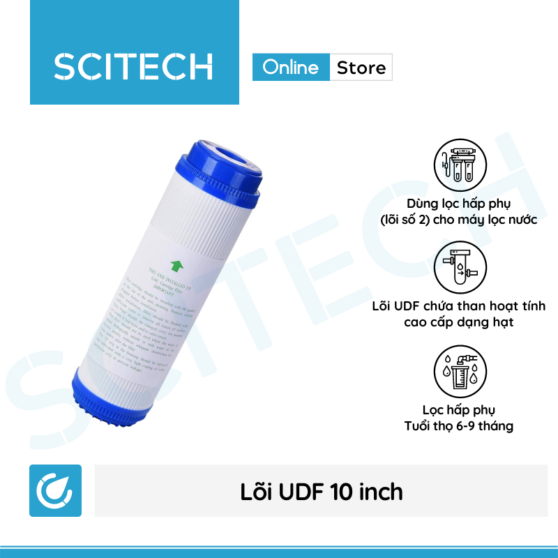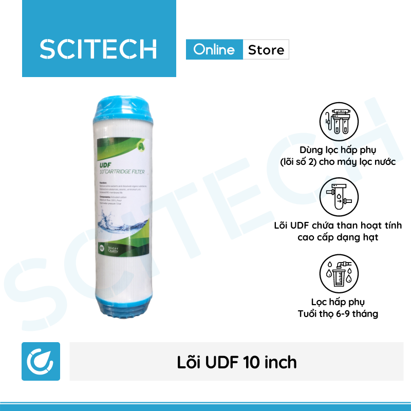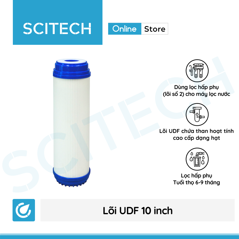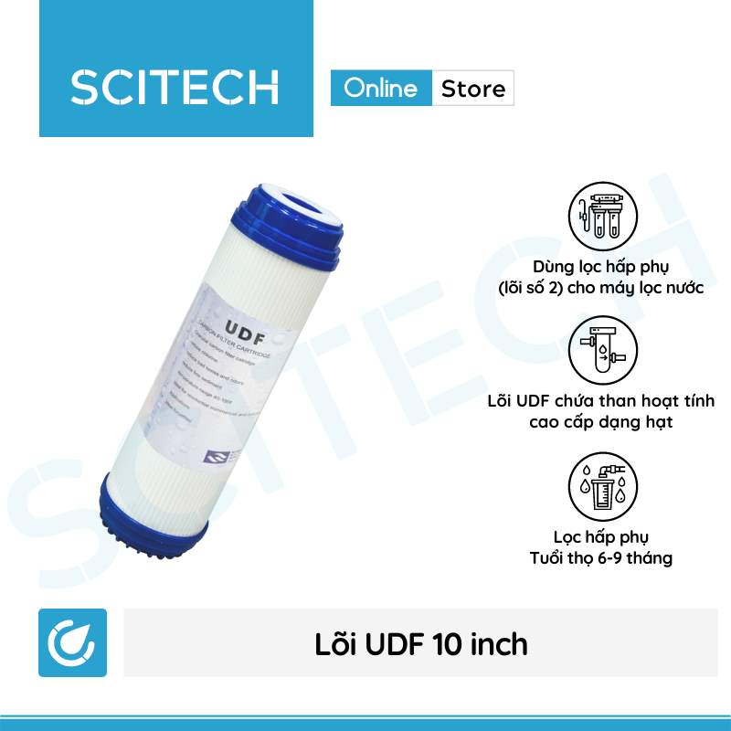 Tuổi thọ lõi khoảng 6-9 tháng, tối đa 12 tháng. Lõi lọc UDF/GAC là lõi số 2 trong máy lọc nước Nano, lõi số 2 trong máy lọc nước RO và các hệ thống lọc nước khác như bộ lọc sinh hoạt, lõi tiền lọc…