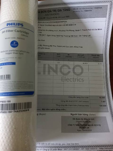 Thông số kỹ thuật Lõi lọc PP1 Philips AWP922 (cho ADD8960, ADD8970, ADD8976, ADD8980)