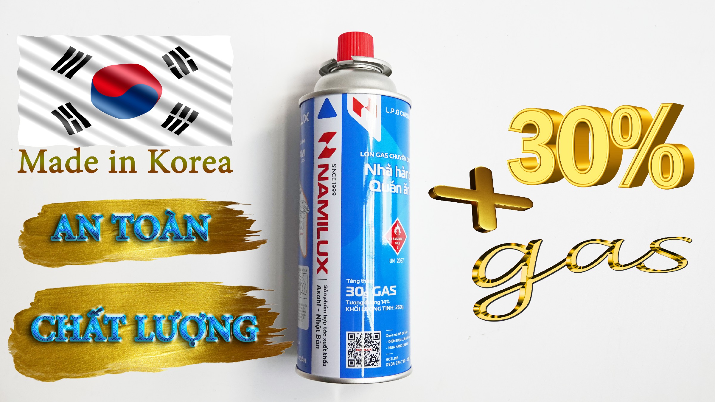 Lon gas chuyên dụng Namilux - HÀNG CHÍNH HÃNG NAMILUX - được sản xuất bởi Nhà sản xuất TAEYANG CORPORATION tại Seocho-Dong, Seocho-Ku, KOREA, và nhập khẩu trực tiếp về Việt Nam. Sản phẩm đang được Namilux phân phối tại Việt Nam.