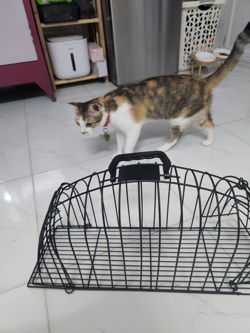 Lồng sấy cho mèo - Lồng tắm cho chó mèo thiết kế tay cầm dễ dàng, bạn có mang chú mèo của mình đi ra ngoài chơi hay đi du lịch cũng vô cùng thuận tiện. Đáy lồng với kết cấu hình lưới, nếu như bạn để móng của chú mèo nhà mình quá dài, sẽ rất dễ bị móc vào, gây tổn thương, vì vậy hãy nhớ phải cắt móng cho chúng thường xuyên nhé.