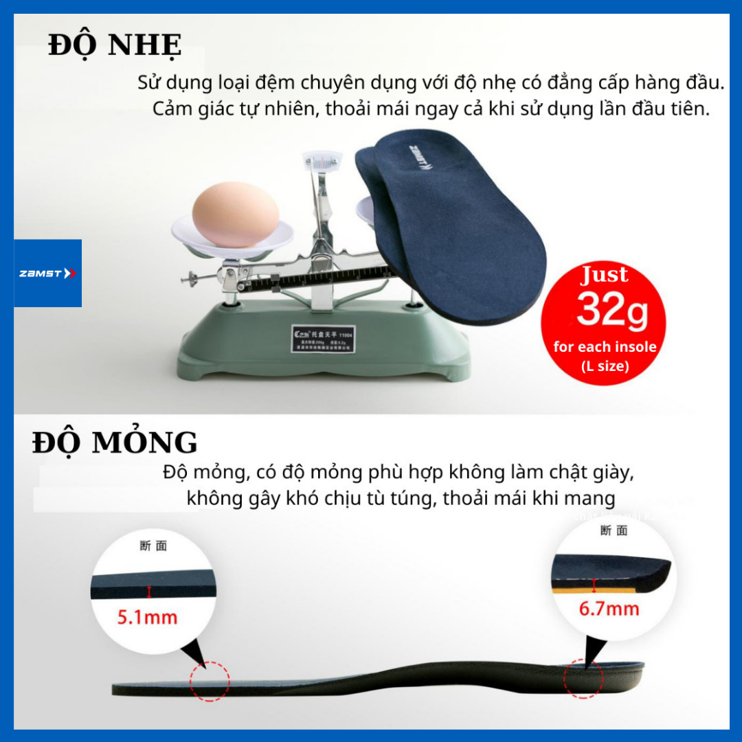 Thông số kỹ thuật Lót giày ZAMST WALK - Footcraft cushioned for WALK hỗ trợ đi bộ