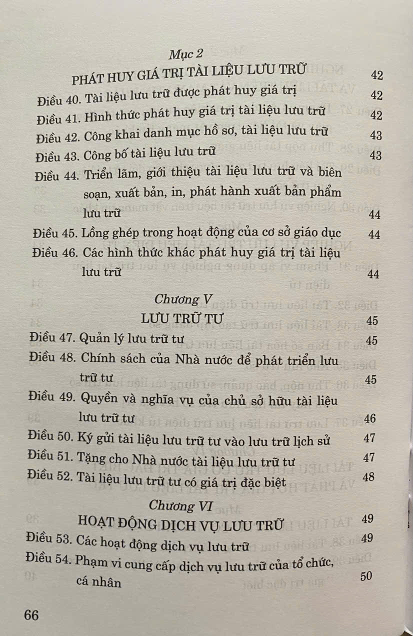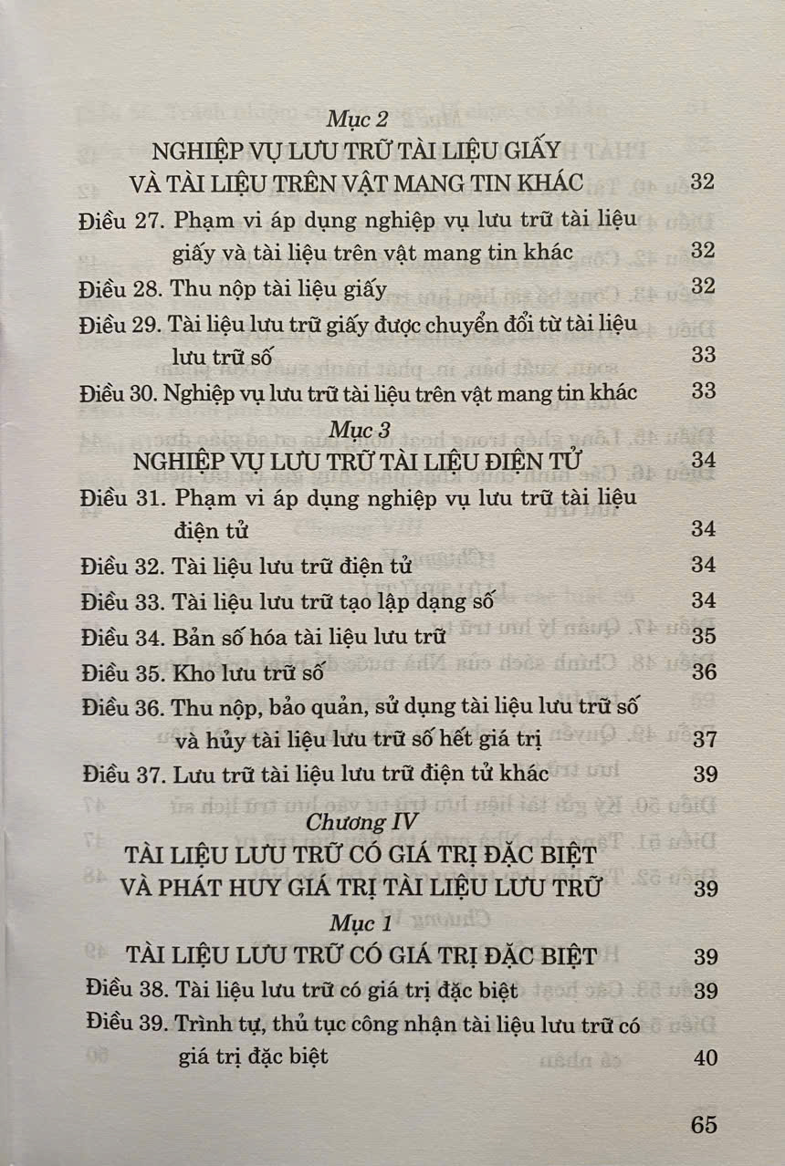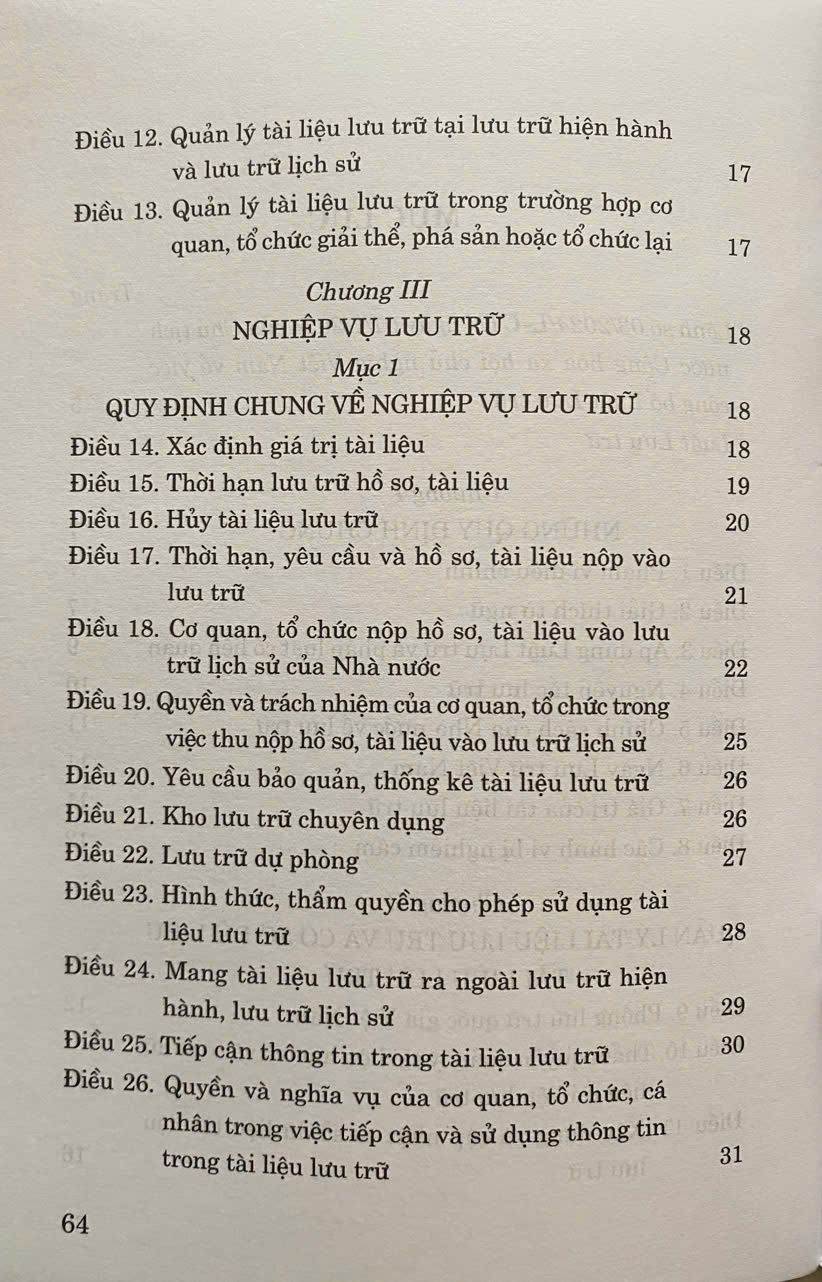 Luật Lưu Trữ số 33/2024/QH15 đã được Quốc Hội khoá XV thông qua ngày 21-06-2024. Luật gồm có 8 chương, 65 điều . Luật có hiệu lực áp dụng từ ngày 01-07-2025