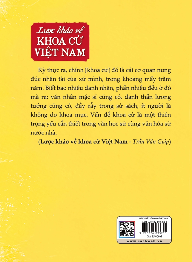 Quyển sách này tập trung biên tập, hiệu đính và chú thích lại nội dung "Lược khảo về khoa cử Việt Nam" của Trần Văn Giáp vì những lý do sau: