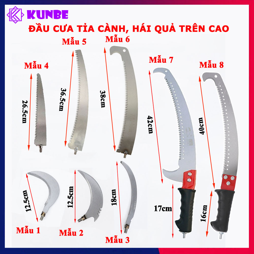 Thông số kỹ thuật Lưỡi Cưa Tỉa Cắt Cành Cây, Hái Quả Trên Cao Đa Năng KUNBE Nhiều Kích Thước Lựa Chọn