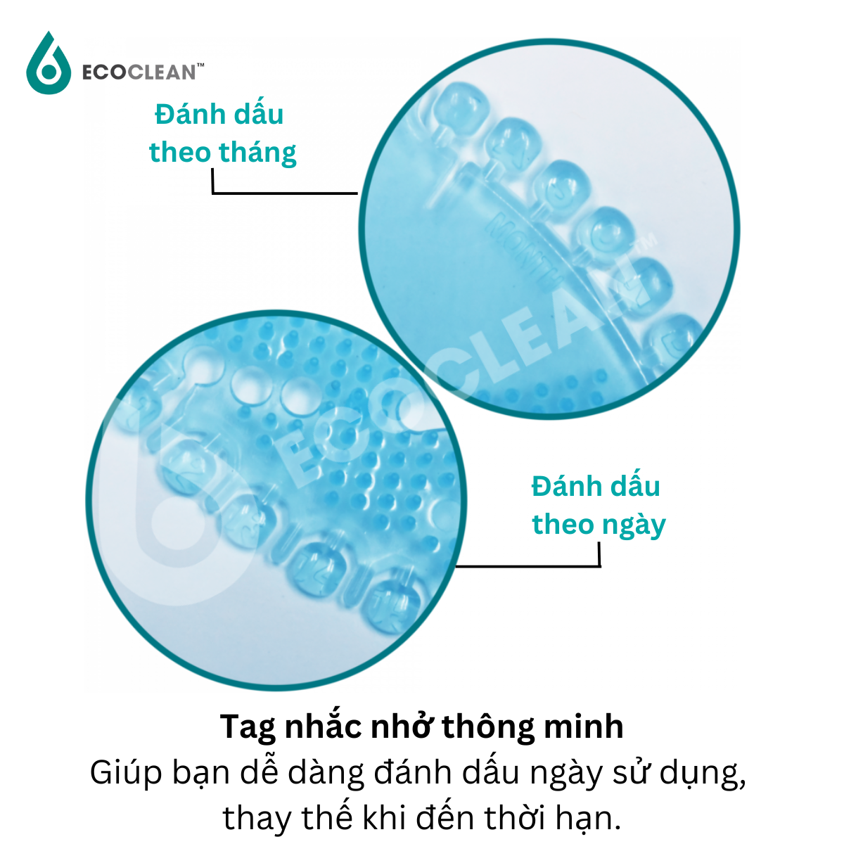 - Sản phẩm có hệ thống các tab số thứ tự ngày và tab số thú tự tháng. Thuận tiện cho việc đánh dấu ngày bắt đầu sử dụng sản phẩm. Nhờ đó giúp cho việc theo dõi và thay thế sản phẩm khi đến hạn.