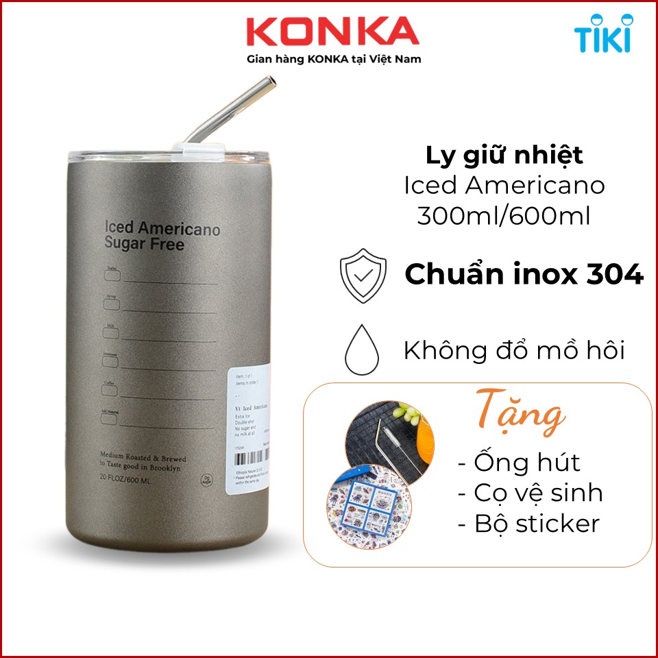 Cốc giữ nhiệt Americano 600ml/300ml, giữ nhiệt đến 12h, chất liệu inox 304 an toàn sức khỏe, ly giữ nhiệt có ống hút, tặng kèm ống hút và cọ rửa ống hút.
