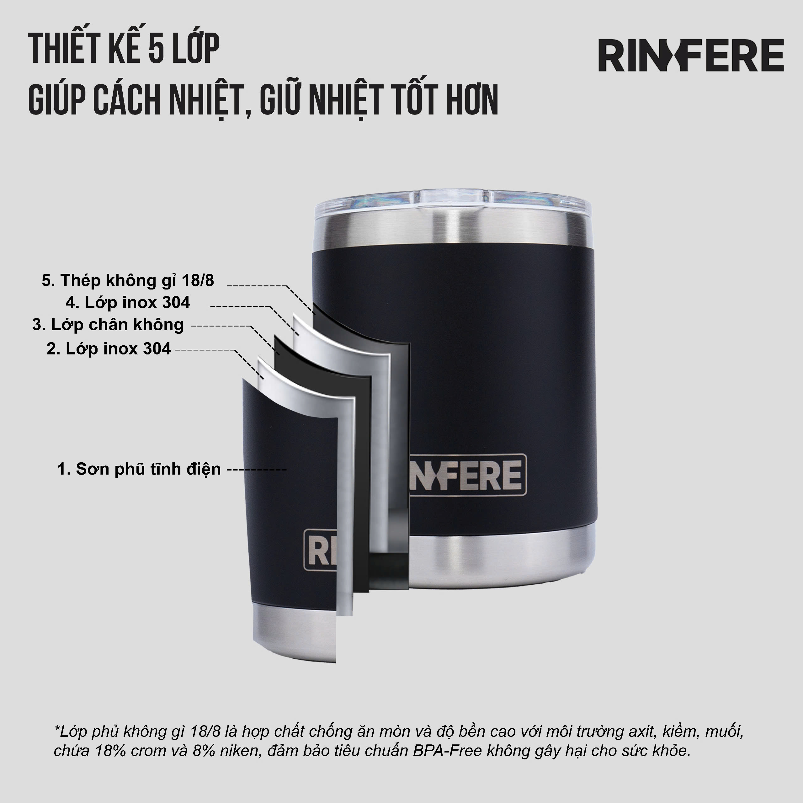 Thông số kỹ thuật Ly Giữ Nhiệt Cà Phê Nắp Trượt Chống Tràn Rinfere (295ml)