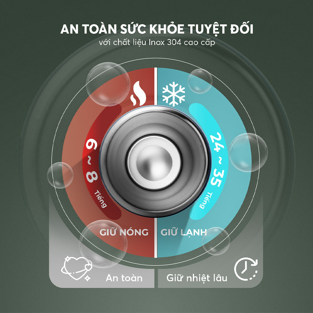 – Giữ nhiệt nóng lên đến 8h, Giữ nhiệt lạnh lên đến 35h.