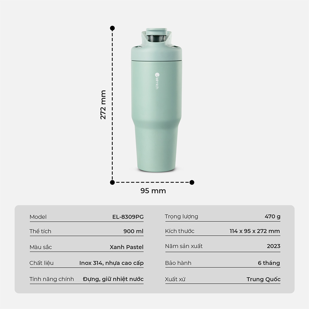 Thông số kỹ thuật Ly giữ nhiệt inox Elmich EL8309 900ml, Hàng chính hãng, giữ nhiệt tốt, nắp bật, kèm ống hút -JoyMall